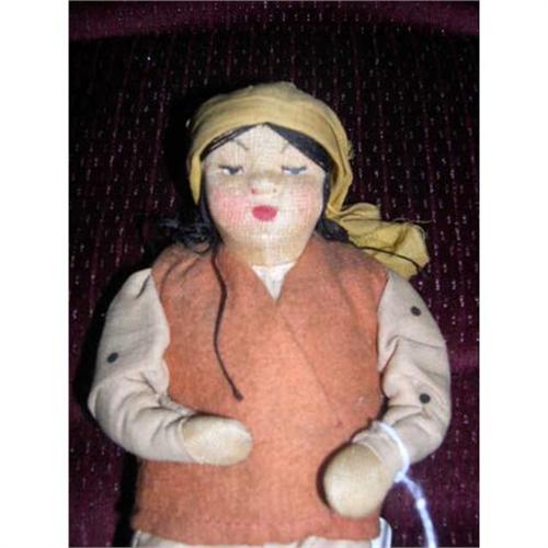 7" Tagged Made in Soviet Union Cloth Doll. She has black wooden shoes. The tag reads Made in Soviet Union 4 numbers Uzbechica (I think that's the spelling.) She has a wire in her arms as when you move one, they both move. There is some light soil to her clothing. She has think black string for wig. Doll comes from a smoke free environment. Buyer to pay $10 for shipping, handling, and insurance. Thanks for viewing.