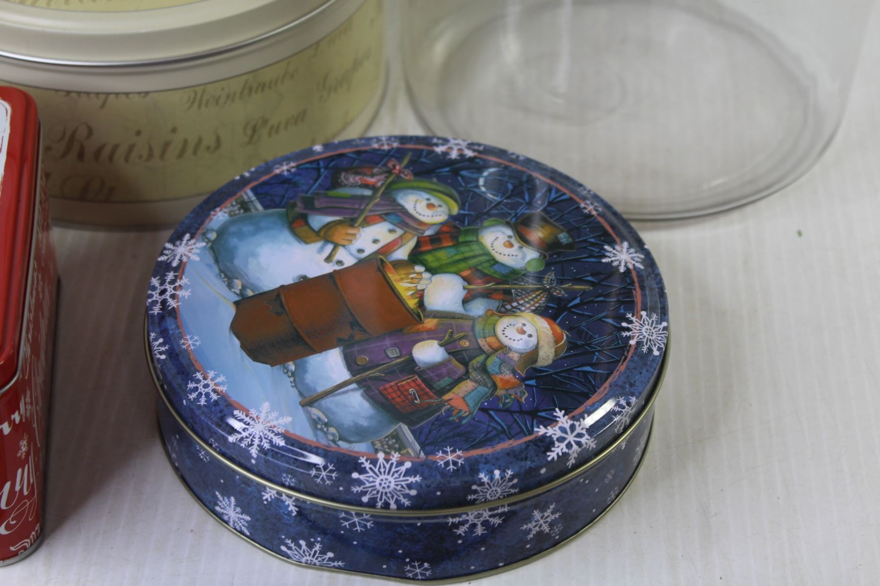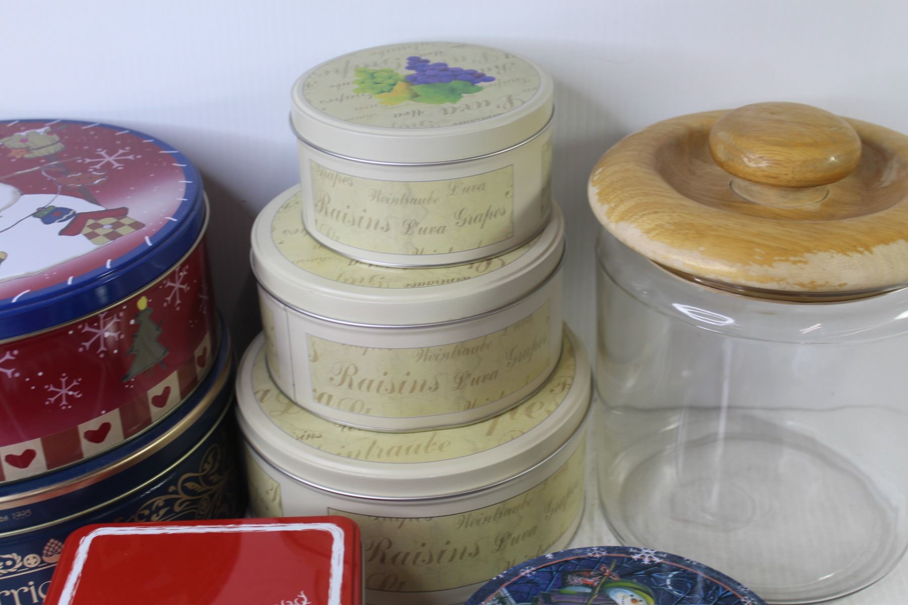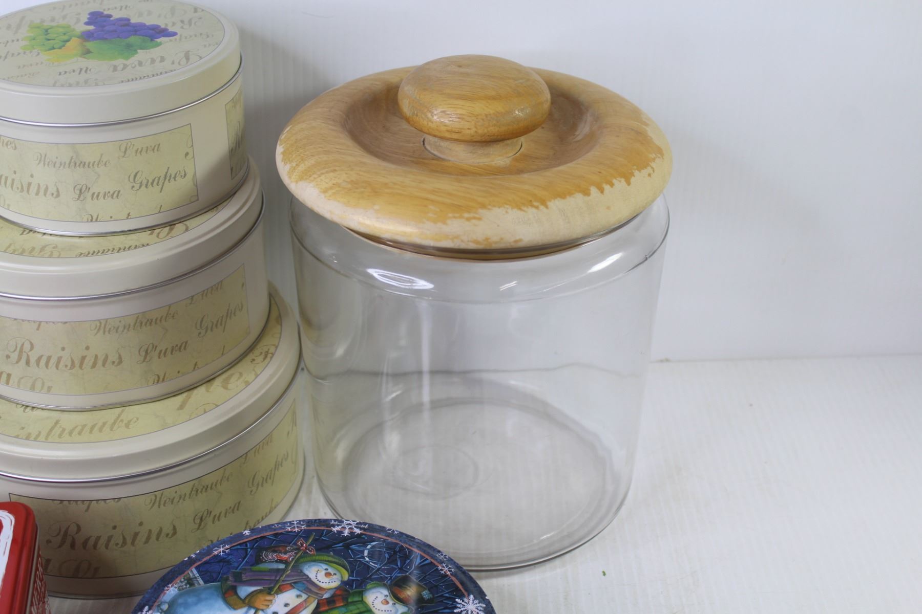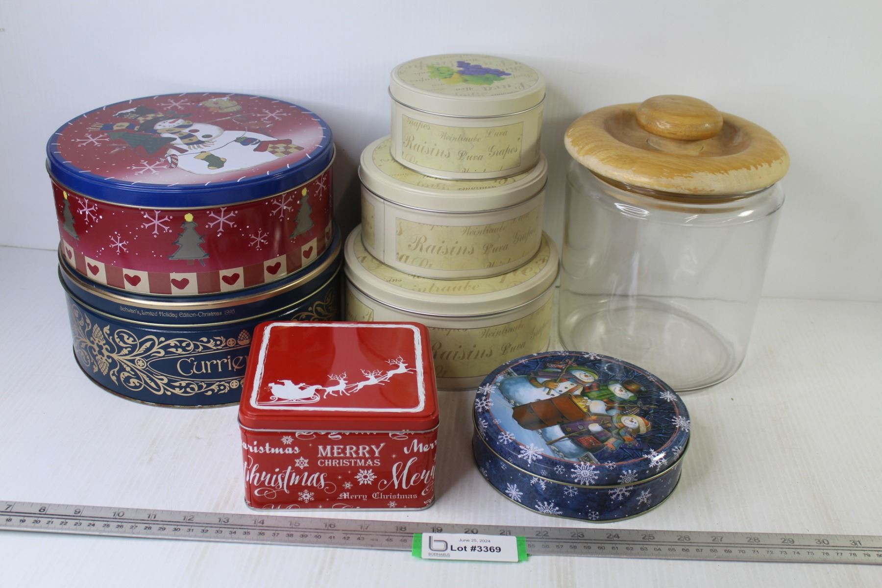 (7) Tin Containers - Glass Lidded Jar/Cannister