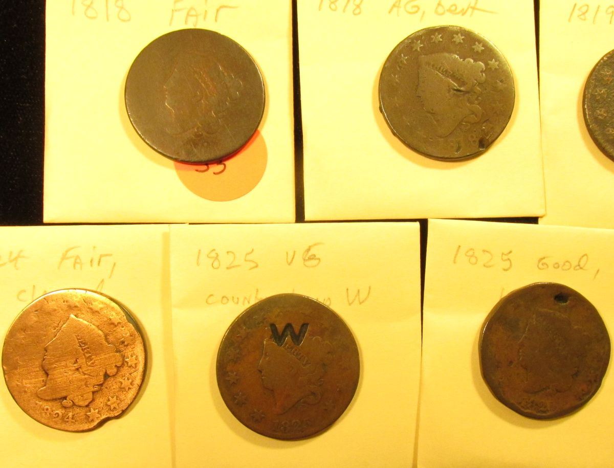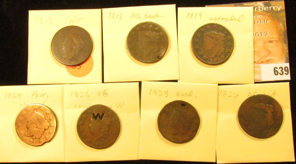 (7) U.S. Large Cents 1818-1826 with Various wear and damages.