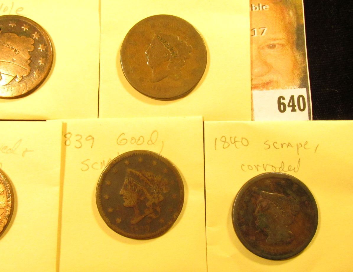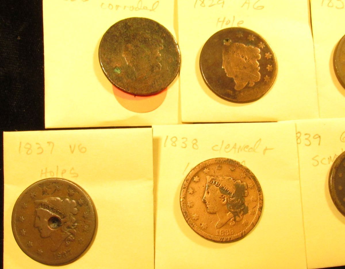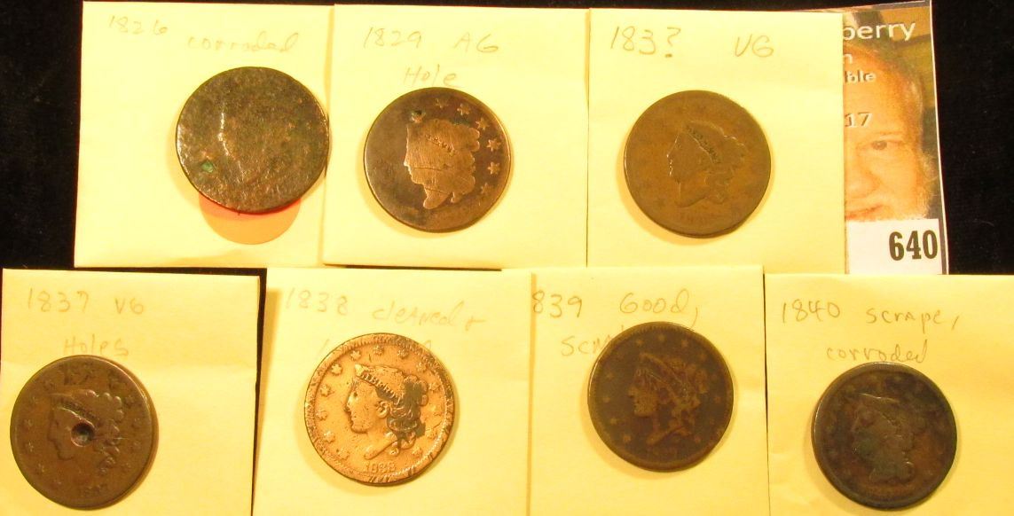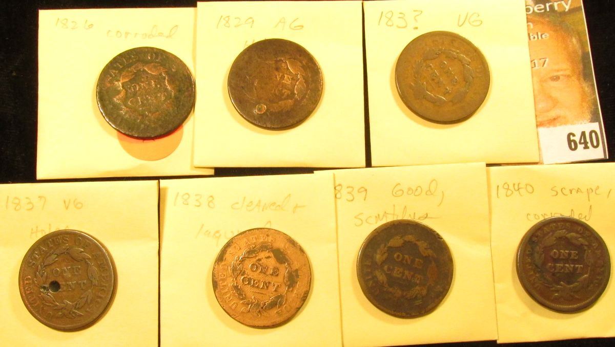 (7) U.S. Large Cents 1826-1840 with Various wear and damages.