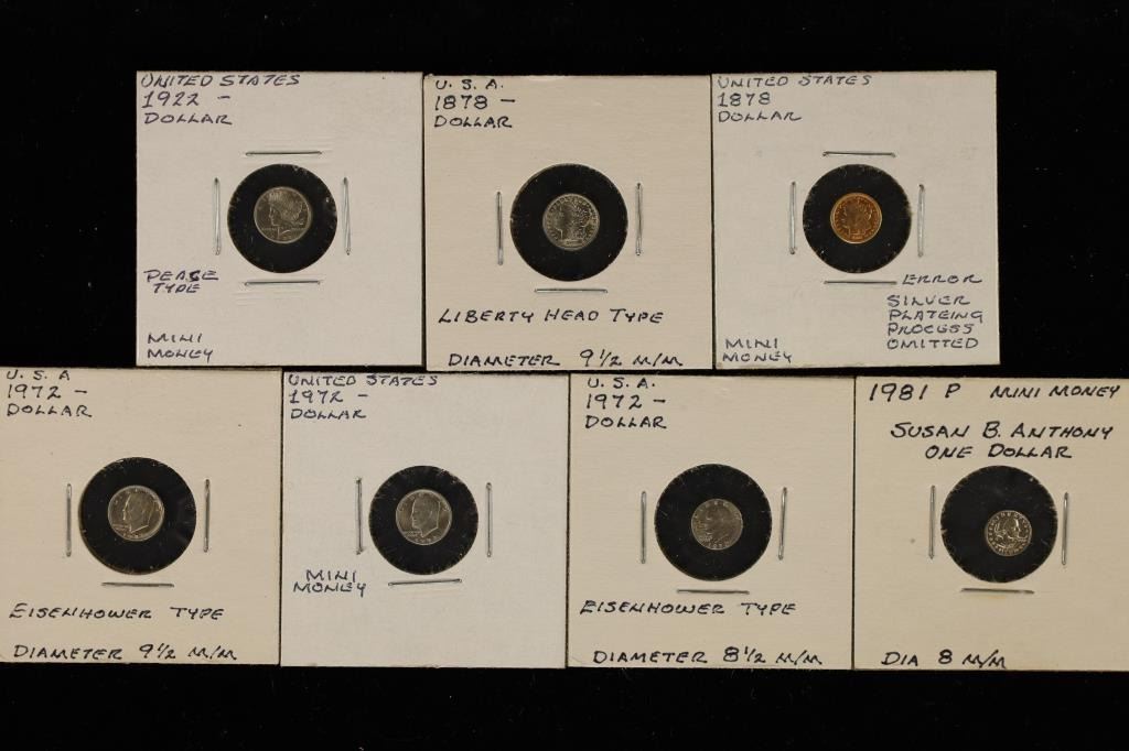 (1 ERROR NO PLATING), 1922 PEACE DOLLAR, 1981 SBA DOLLAR AND 3-1972 IKE DOLLARS