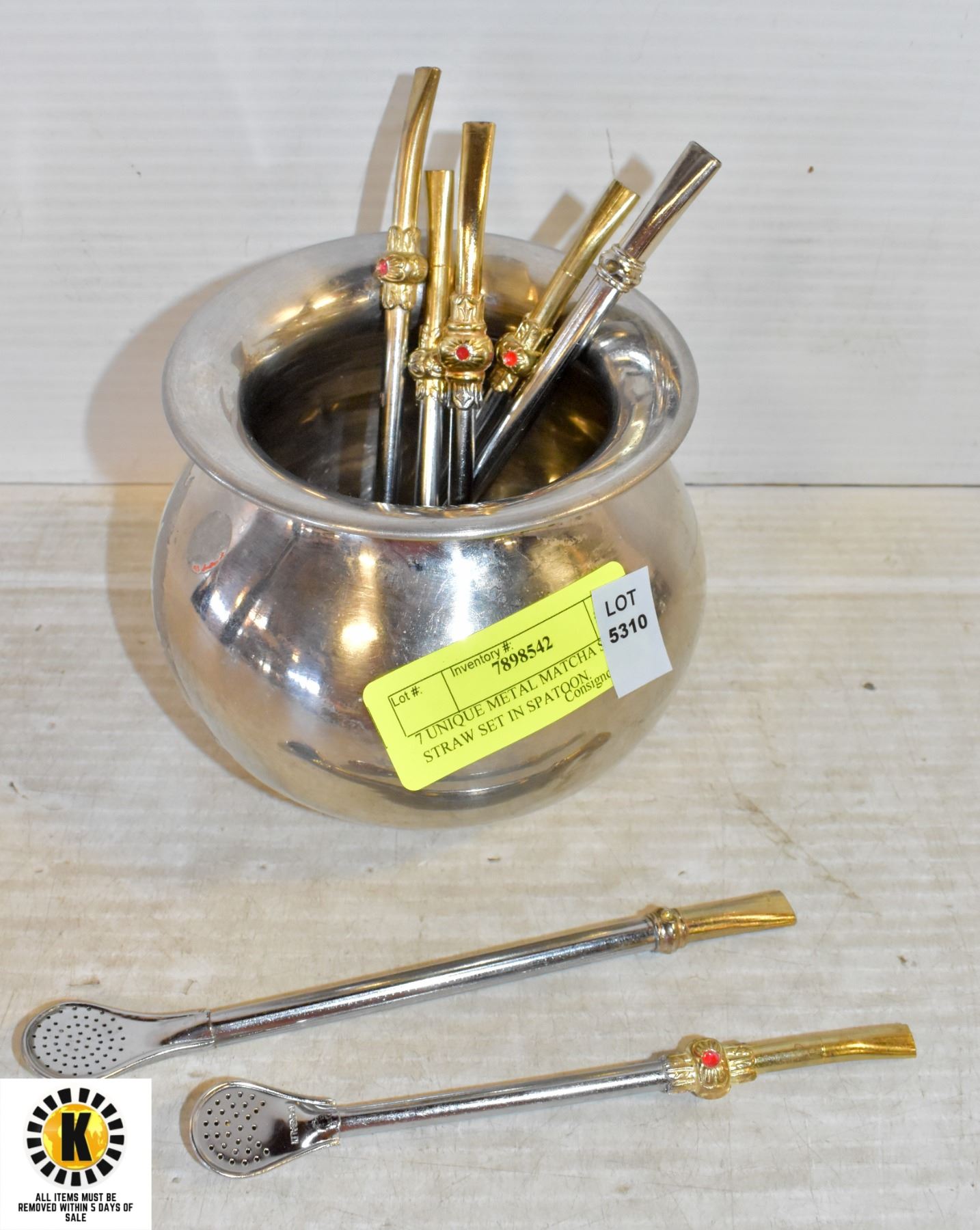 7 UNIQUE METAL MATCHA STRAIN STRAW SET IN SPATOON