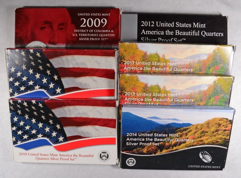 7- US MINT SILVER PROOF QUARTER SETS (09,2-10,12,2-13,14)