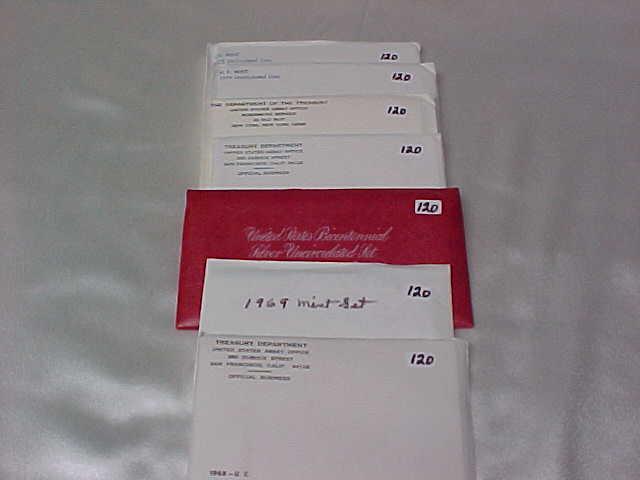 7 US Mint Sets: 1968, 1969 (no outer envelope), 1976-3 pc Silver, 1970, 1972, 1974, 1975