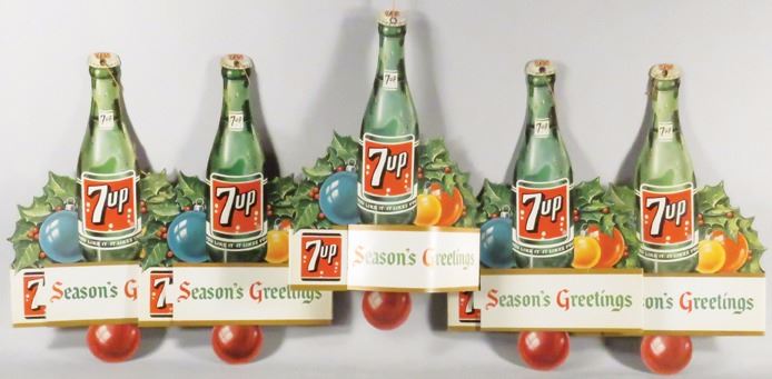 7-Up Die Cut Cardboard Dimentional Hanging Displays. (6) NOS condition. 10 X 16 inches unassembled.