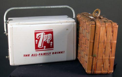 7-Up picnic cooler & basket Progress Refrig. Co. 17" X 9"X 19"