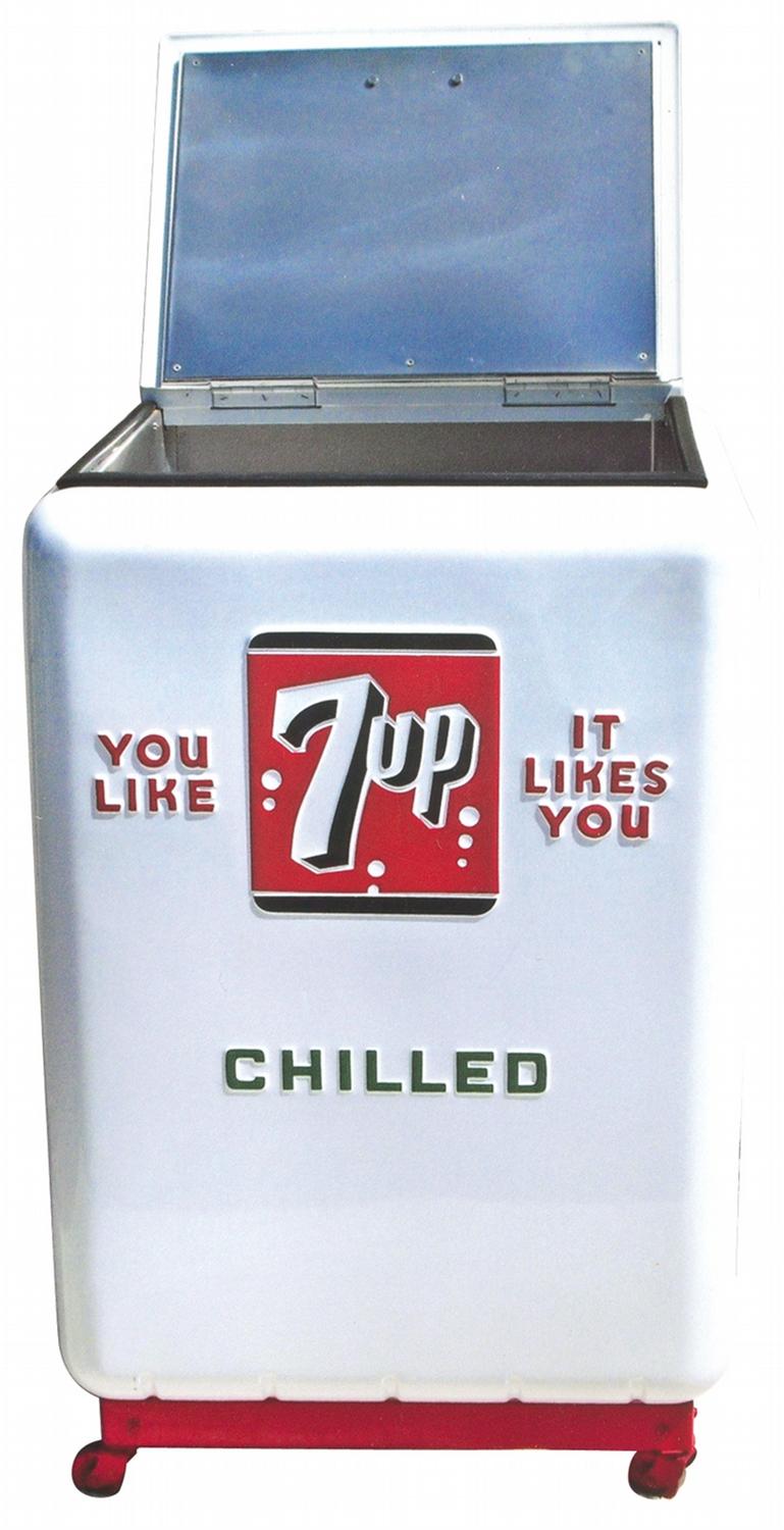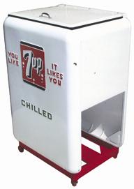 7-Up Quikold Junior cooler w/embossing, c.1940's, holds 48 bottles, a Rare cooler that's been beauti