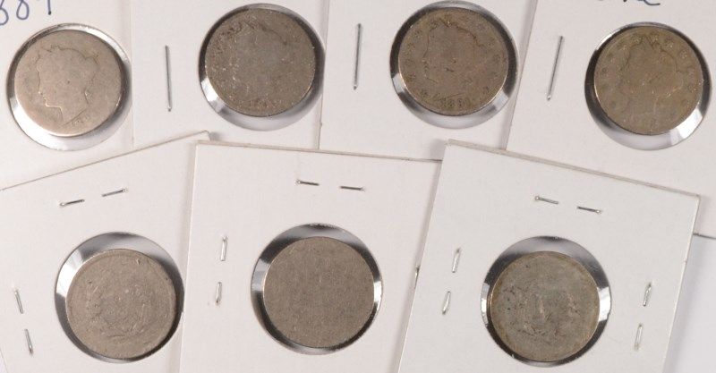 7 - "V" NICKELS 1884-1896, AG-GOOD, SOME PROBLEMS