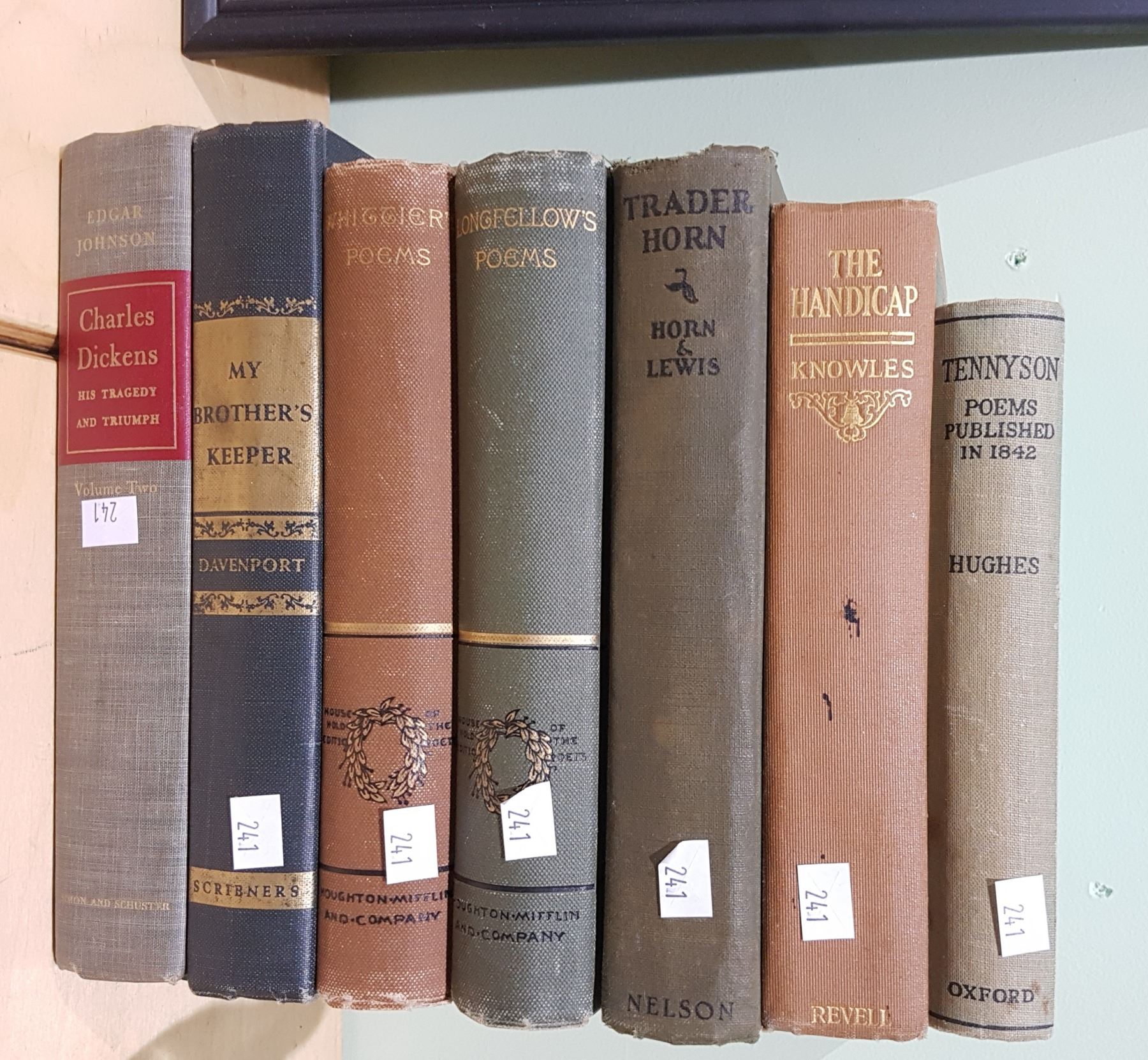 1890'S-1950'S INCLUDING AUTHORS CHARLES DICKENS, DAVENPORT, HORN & LEWIS, TENNYSON ETC NOVELS & POEMS