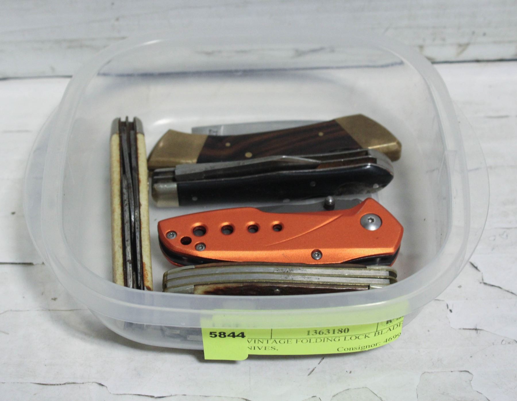 7 VINTAGE FOLDING LOCK BLADE KNIVES,