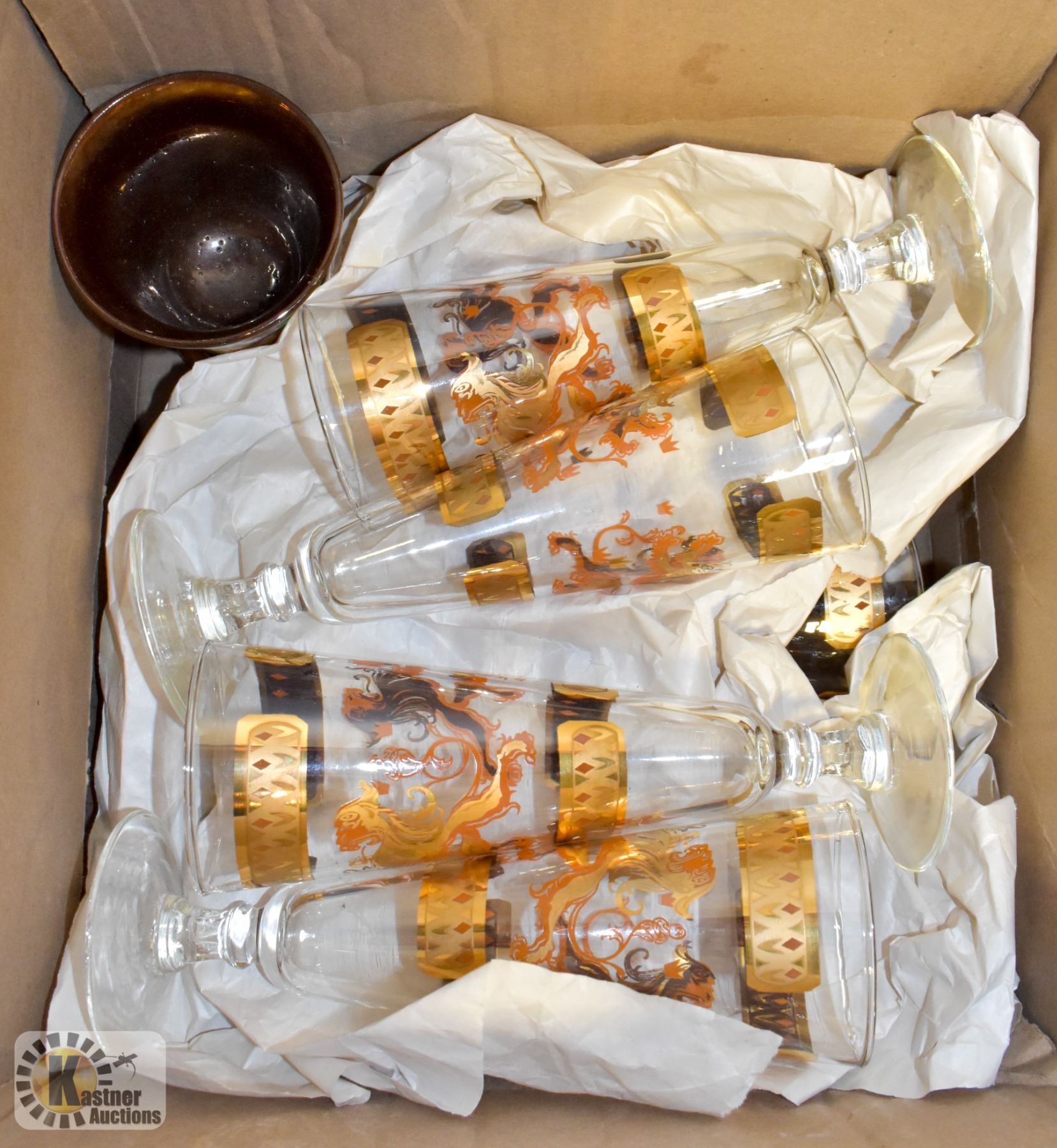 7 VINTAGE RETRO DRINK GLASSES & COPPER LUSTRE CUP