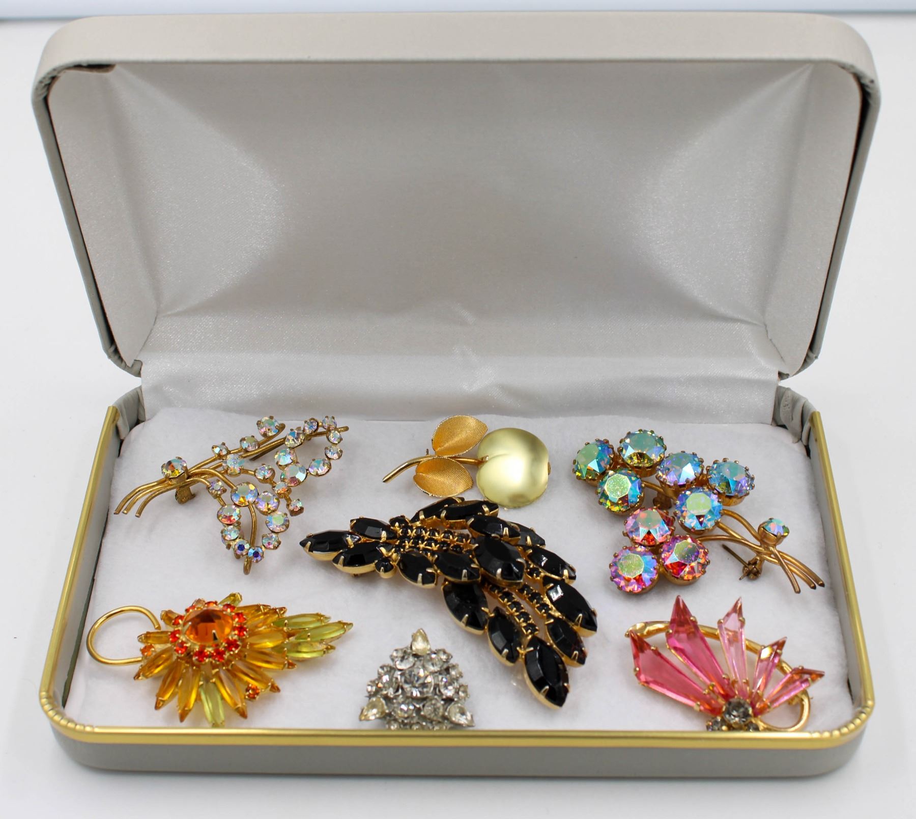 AUSTRIA BOTTOM LEFT IS A JULIANA, ALSO A SIGNED AUSTRIA, 1940'S, 50'S & 60'S, IN A JEWELRY CASE