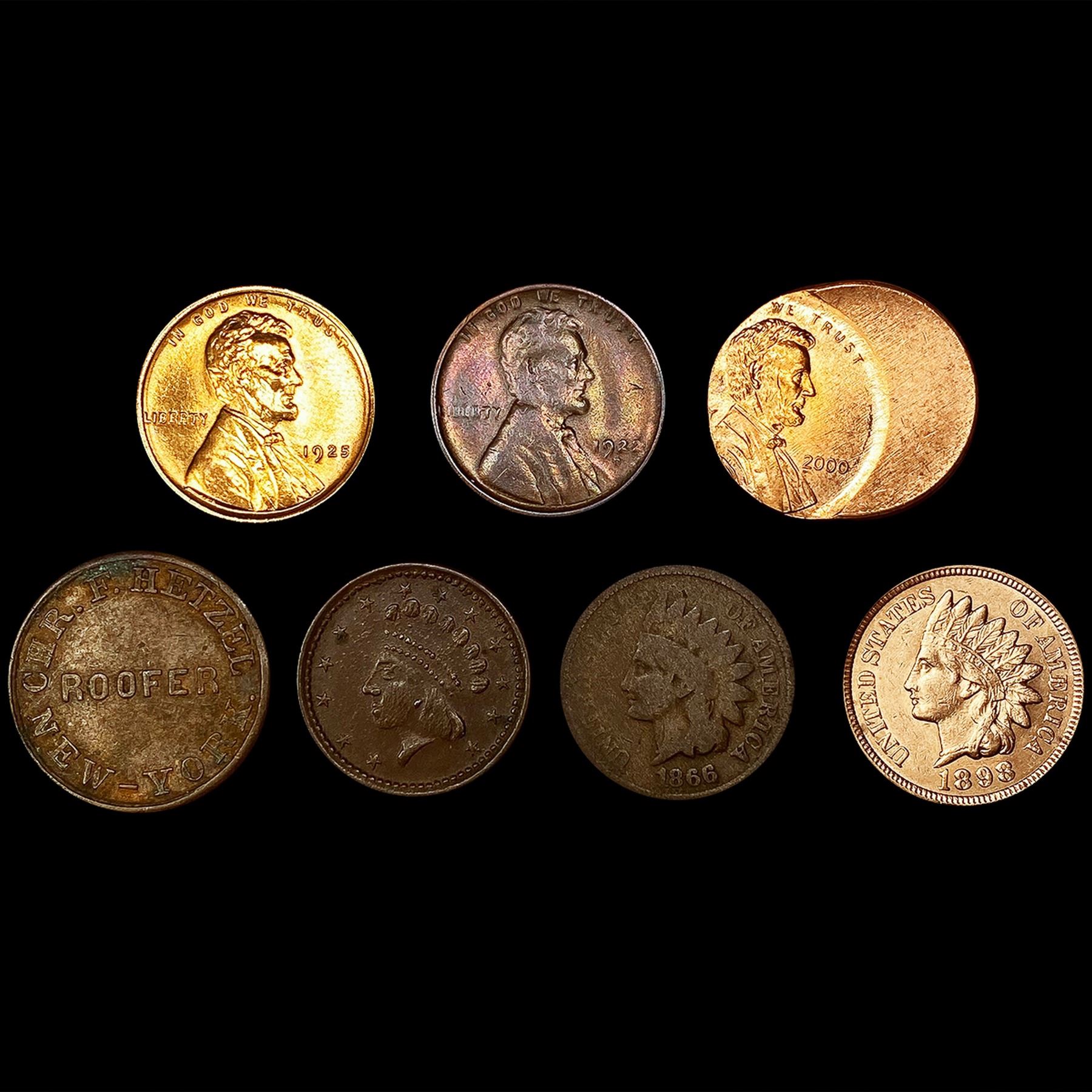 (7) Varied US Cents & Tokens ((2) 1863, 1866, 1898