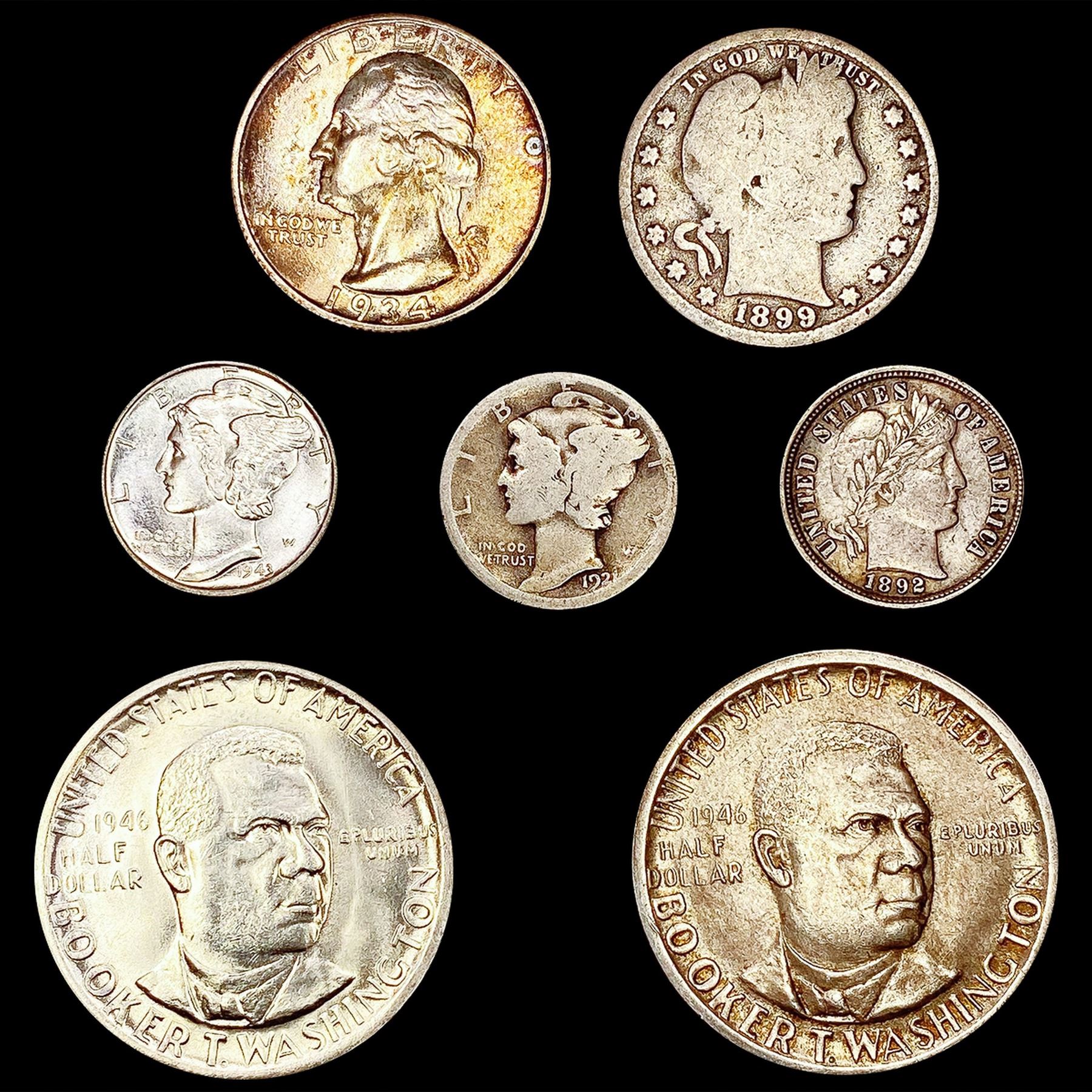 [7] Varied US SILV Coinage (1892, 1899-S, 1921, 19