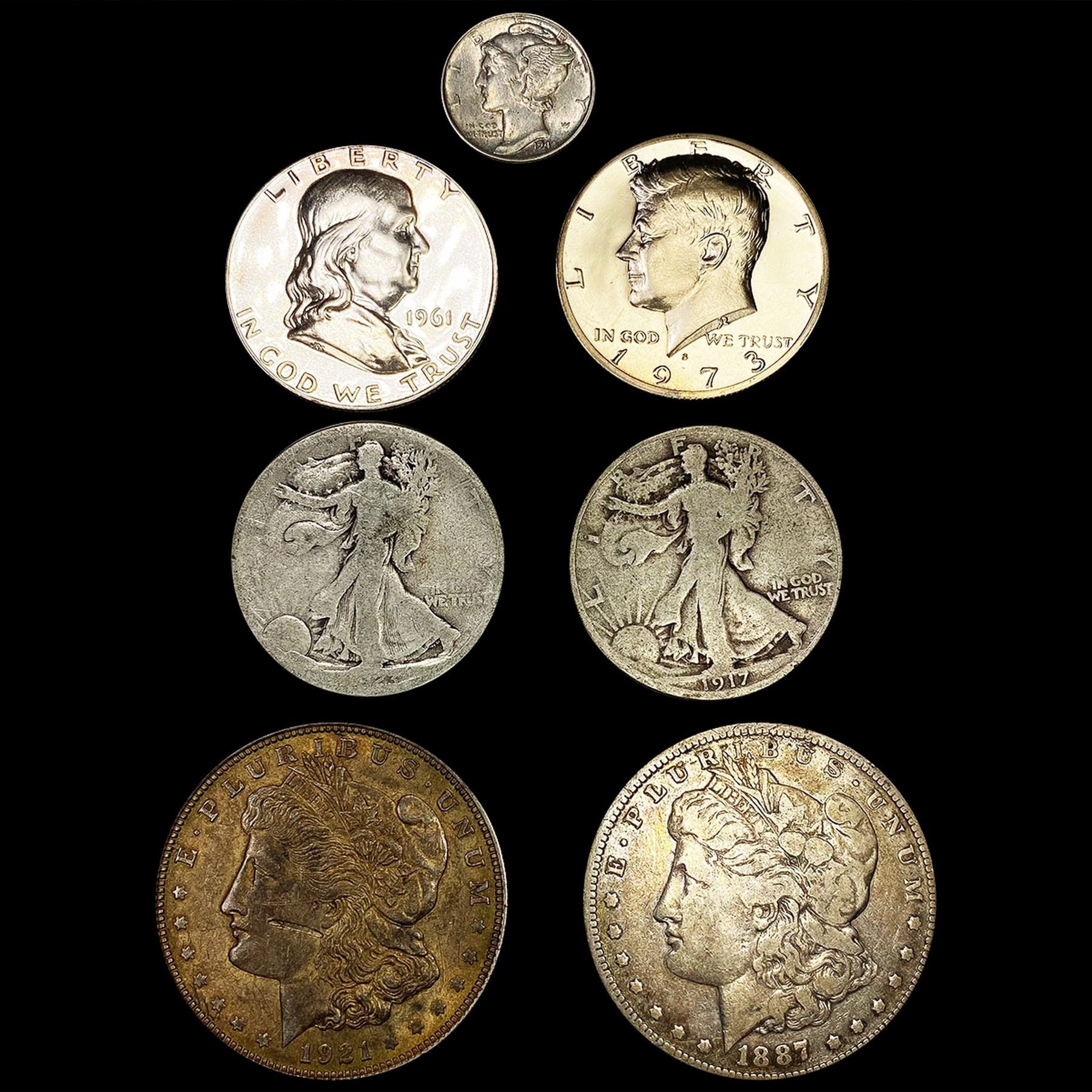 [7] Varied US SilveCoinage [1887-O, 1917, 1921, 19