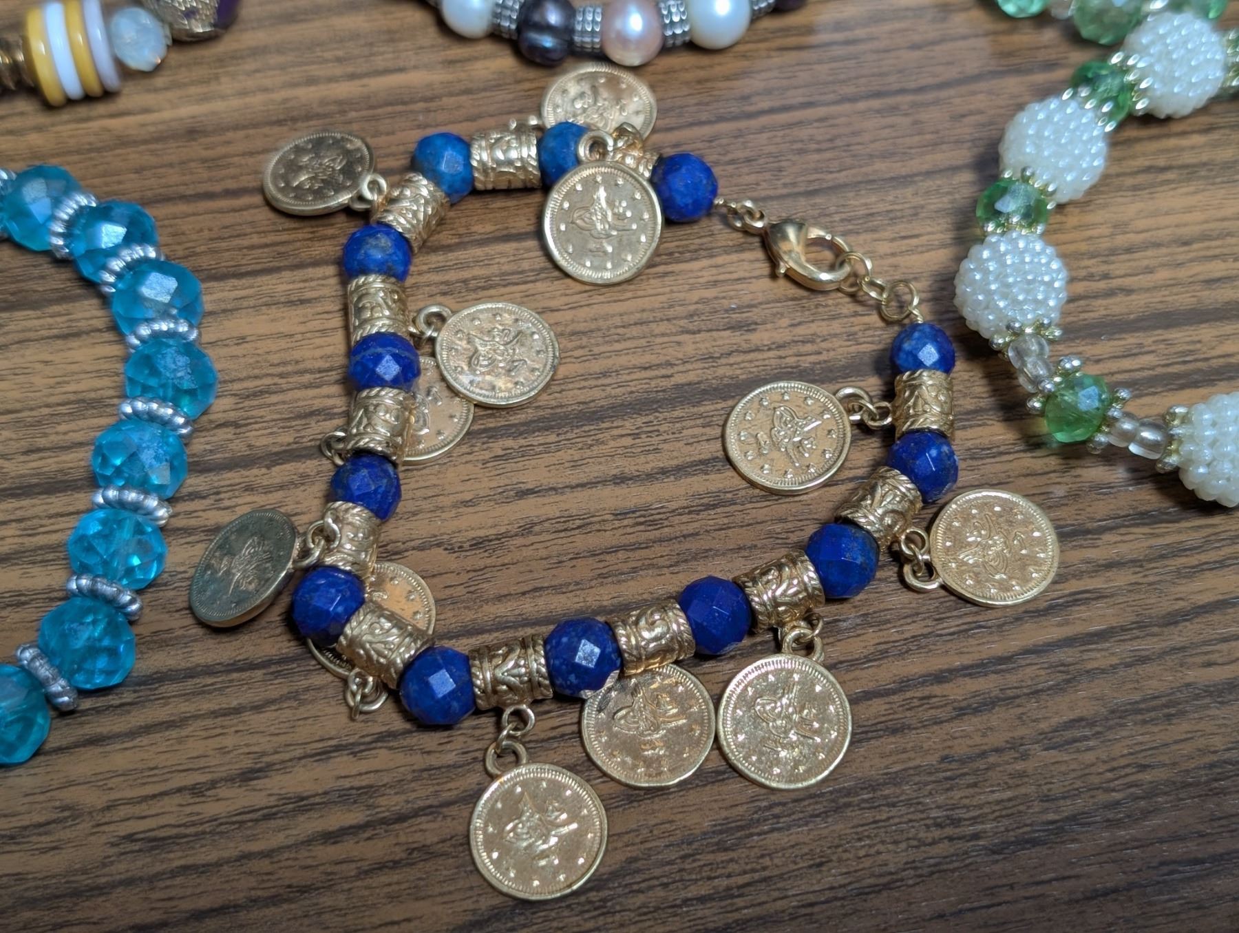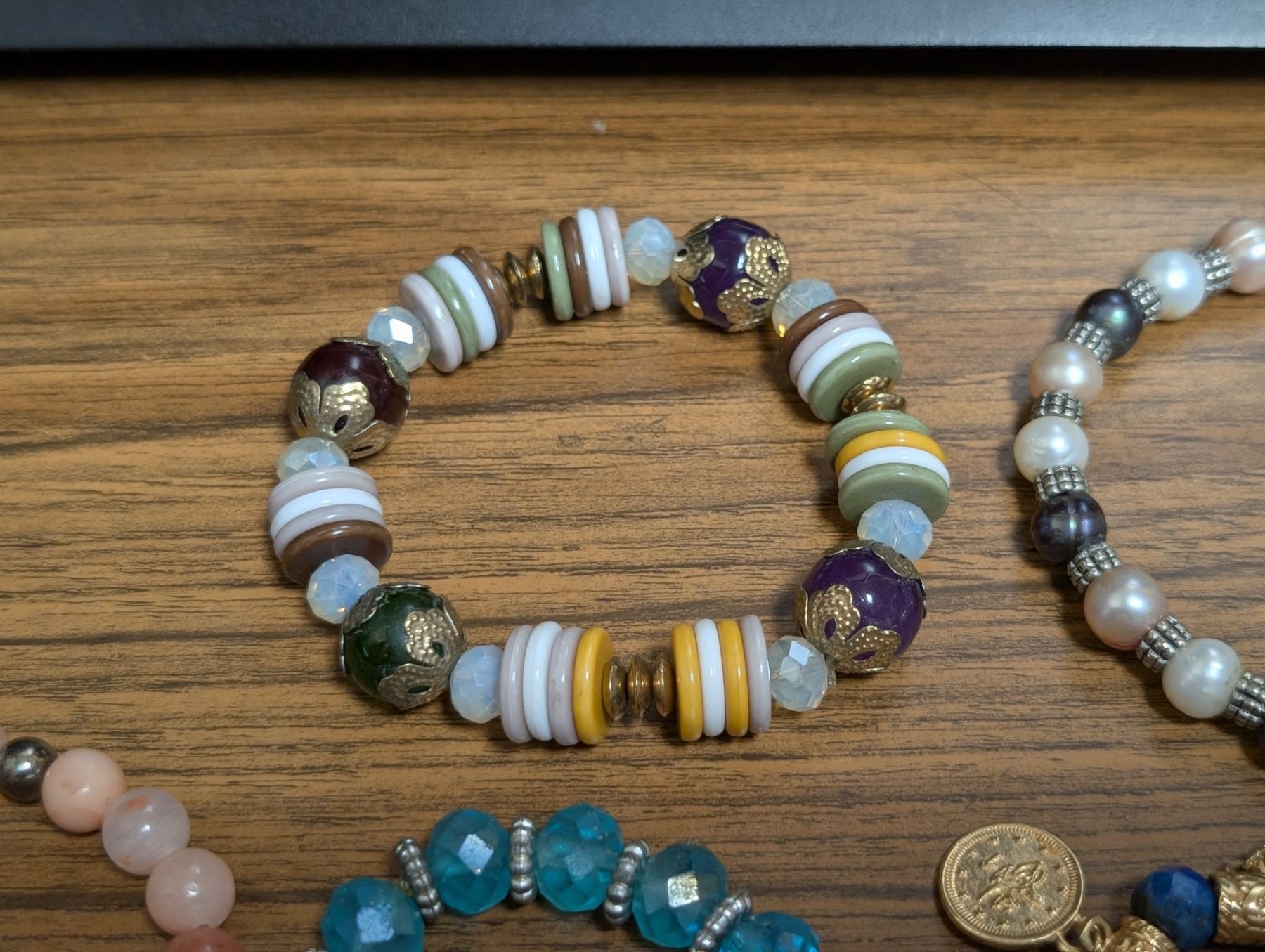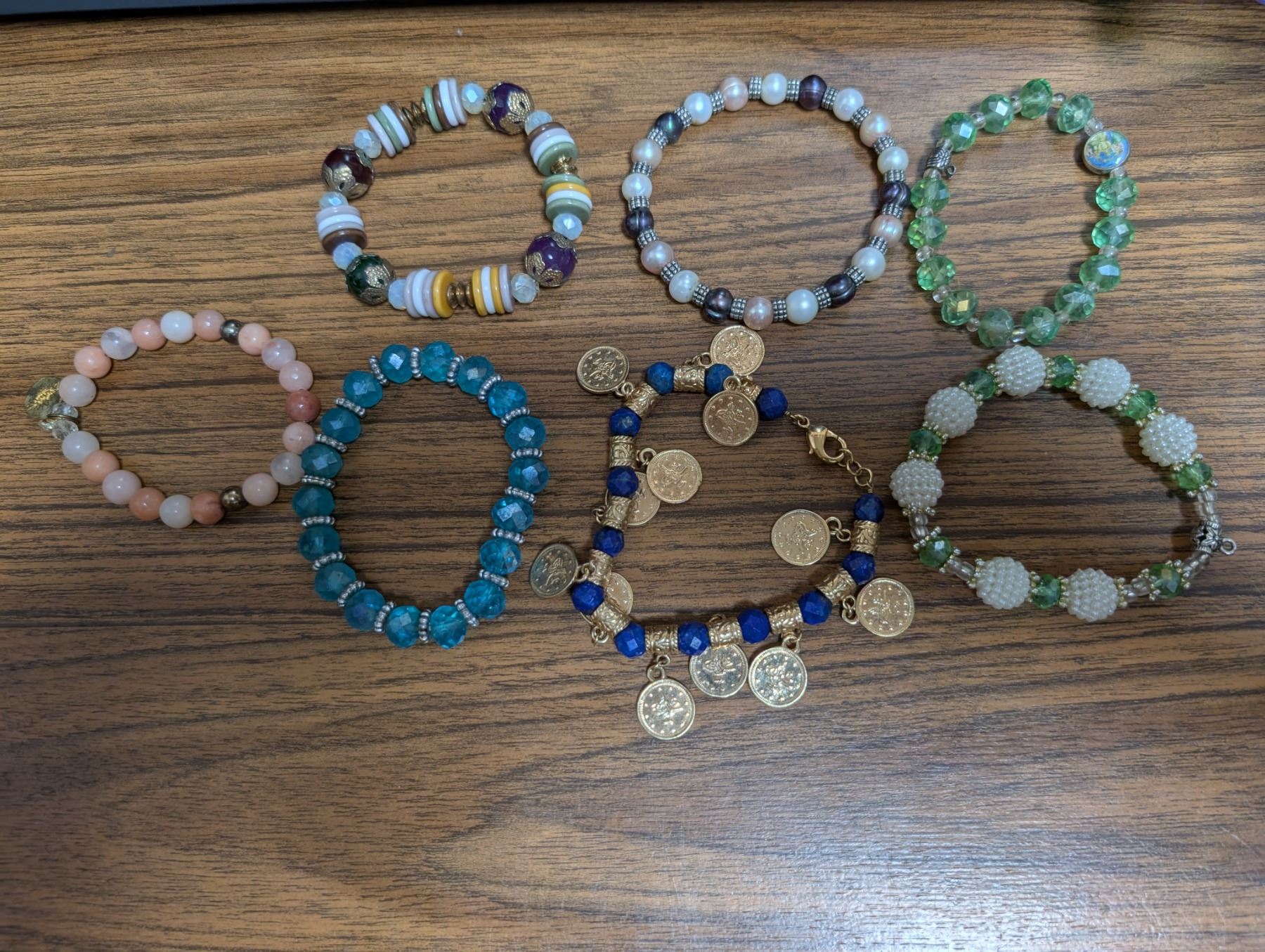 (7) Variety Bracelets (beaded, Musical Coins, Steel, etc.)