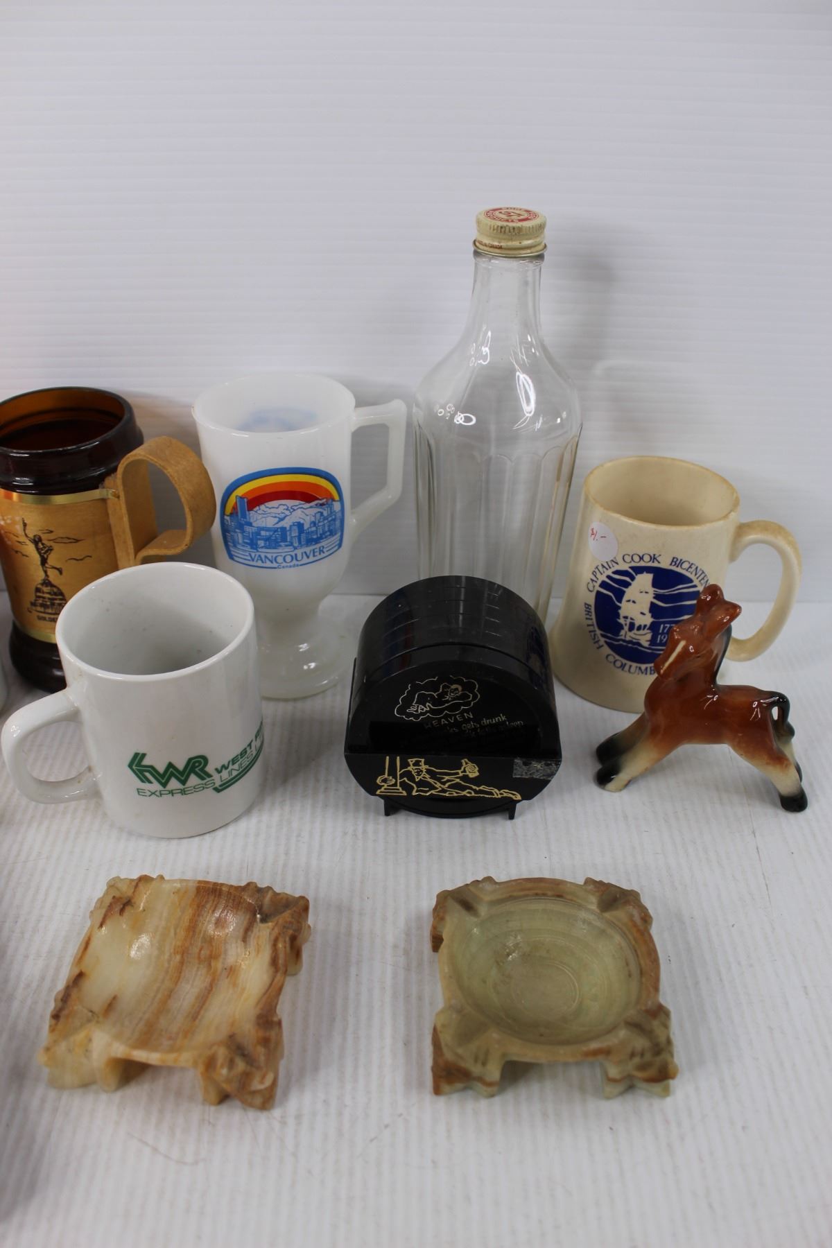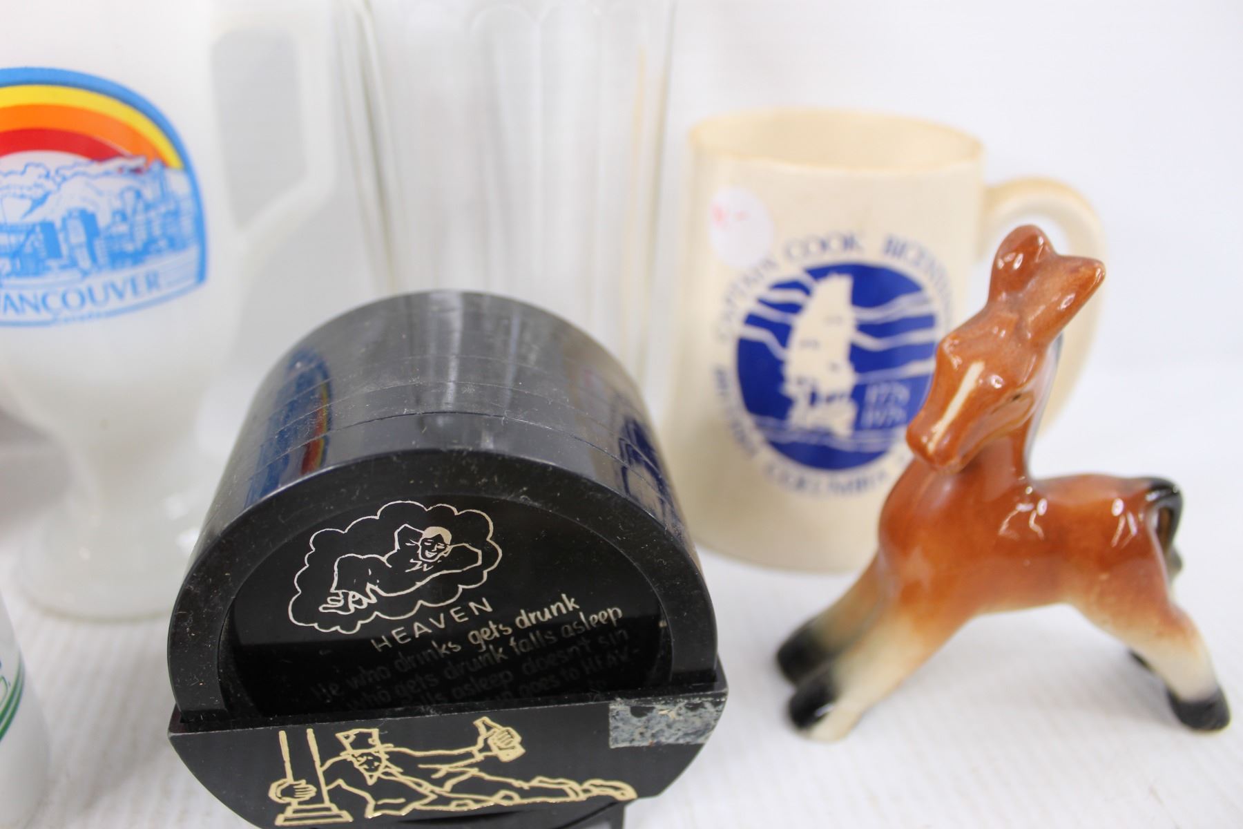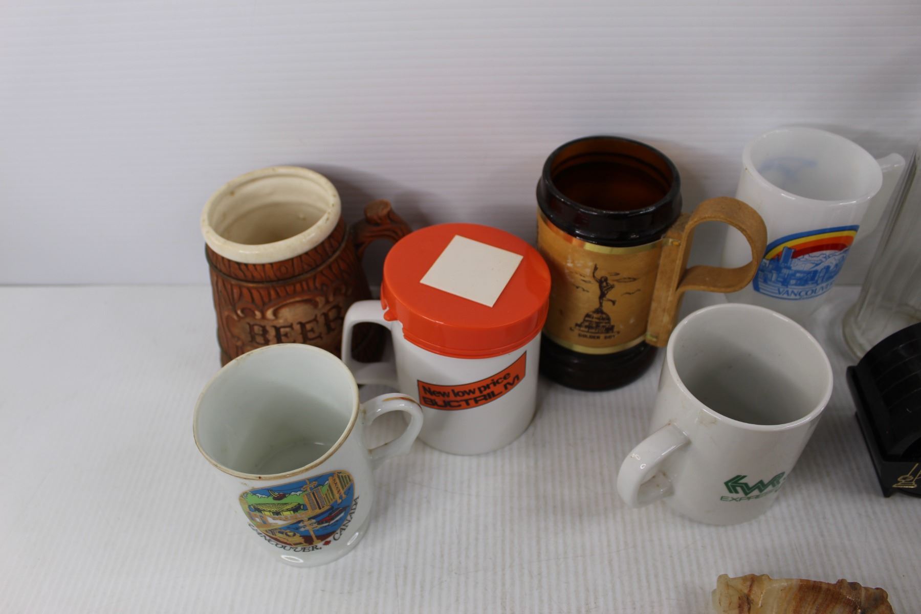 (7) Various Different Coffee Cups- Captain Cook, Vancouver, Beer Steins, Heinz 57 Bottle, Coasters,