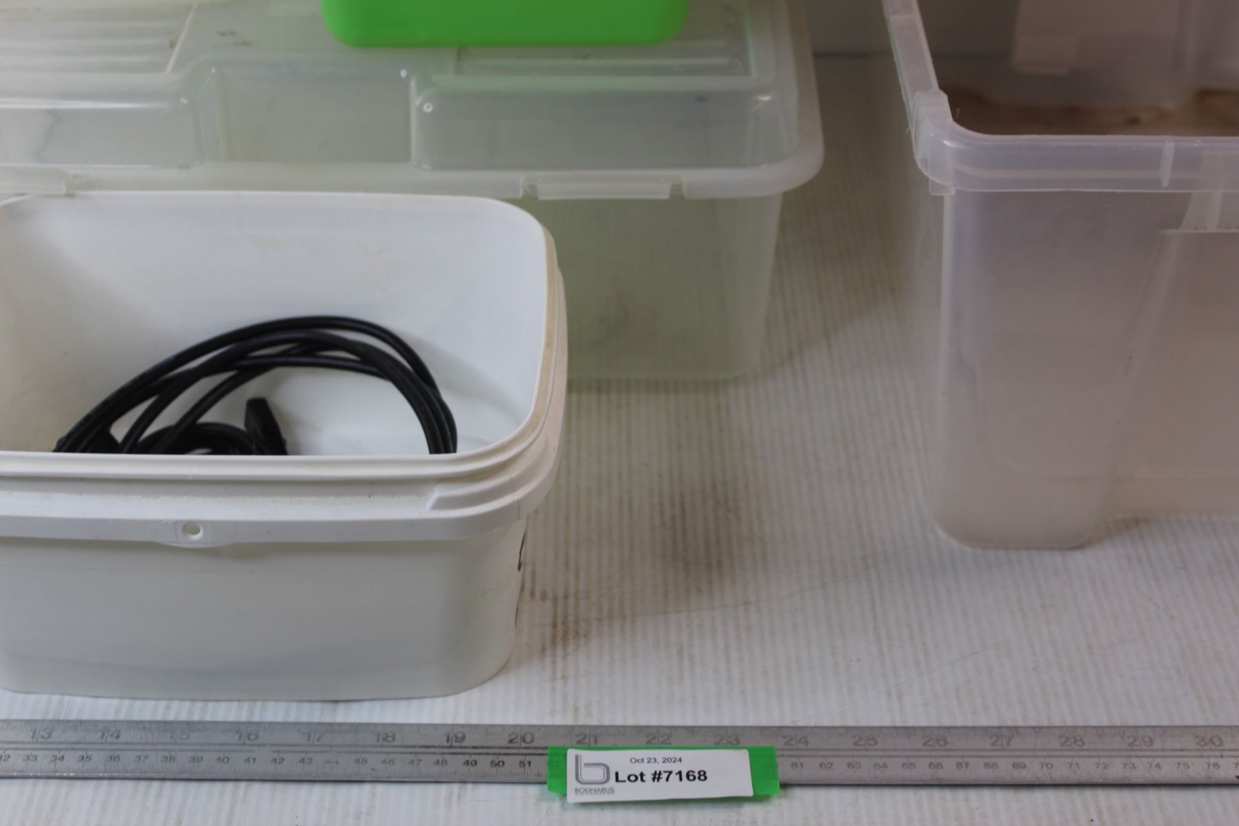 (7) Various Different Sized Containers, TV HDMI Cord, General Electric Appliance Cord