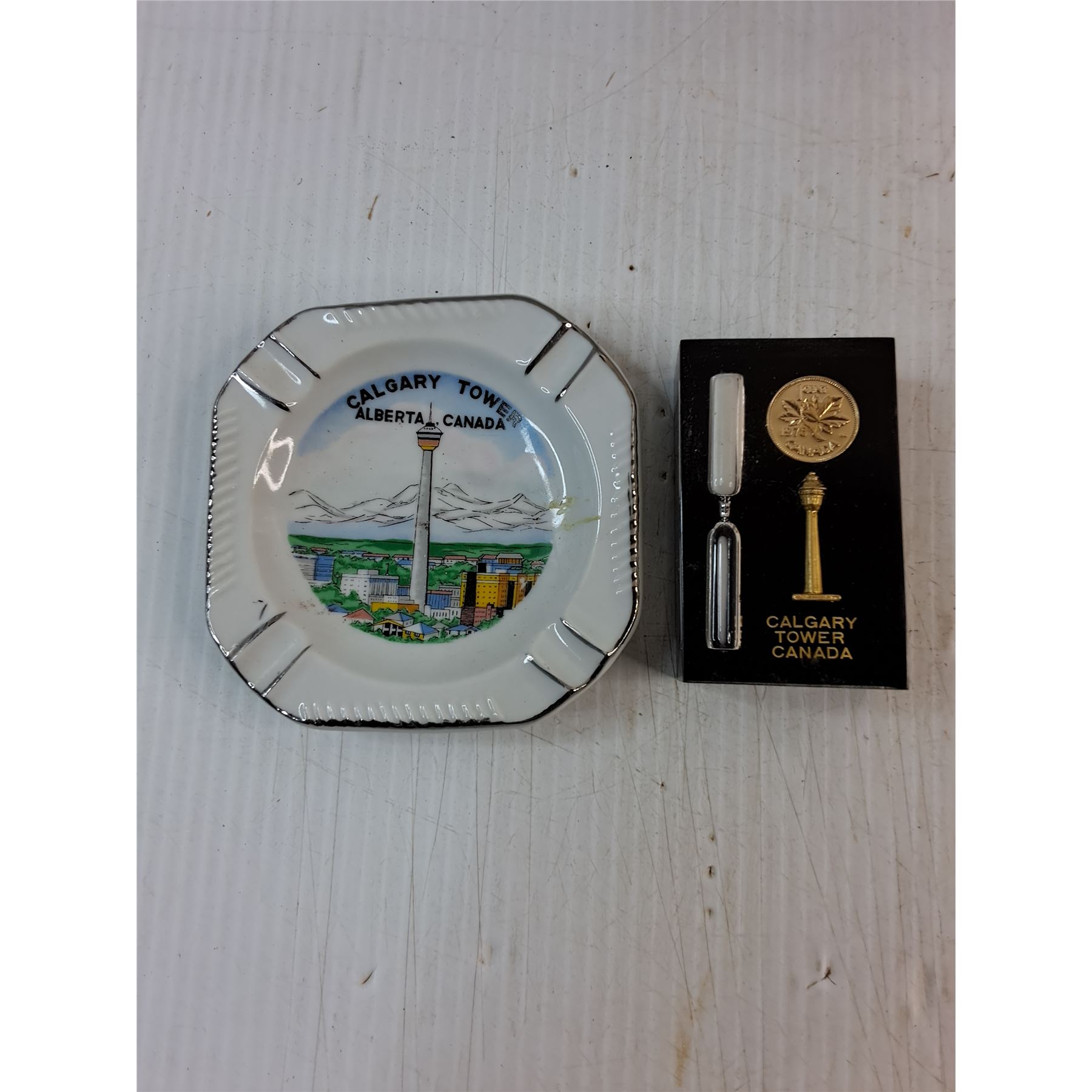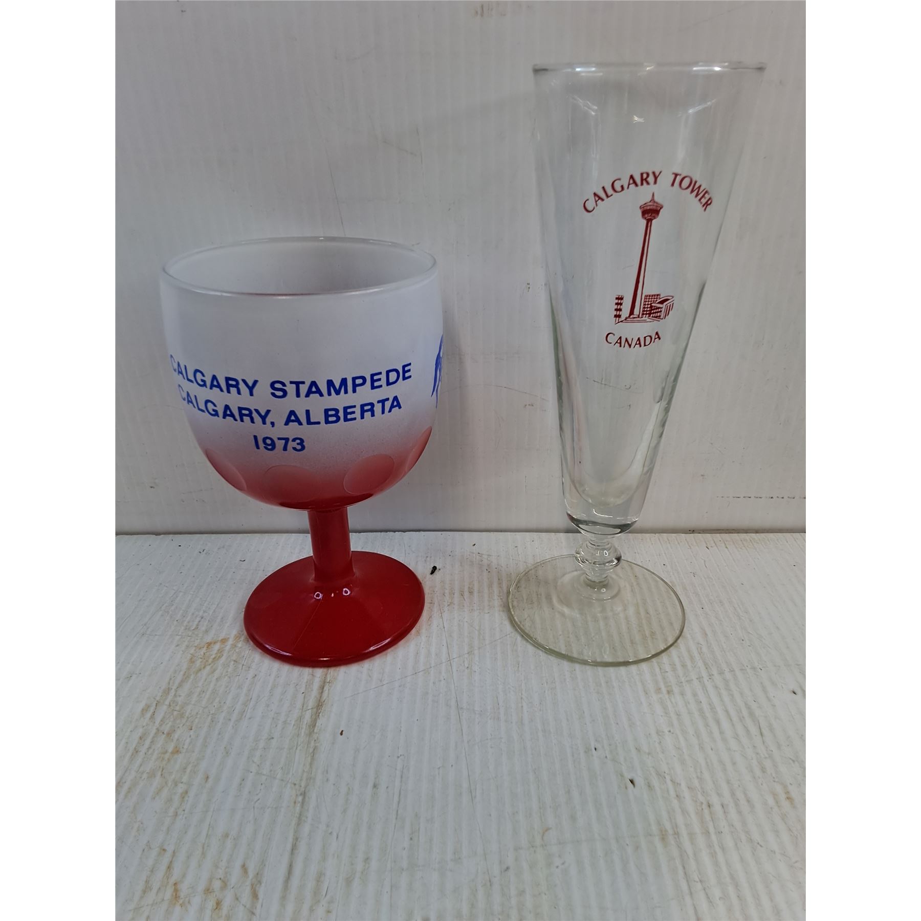 (7) Vintage Calgary Tower/Stampede Items-(2) Books of Matches,Beer Glass,Postcard,Beer Glass,Ashtray