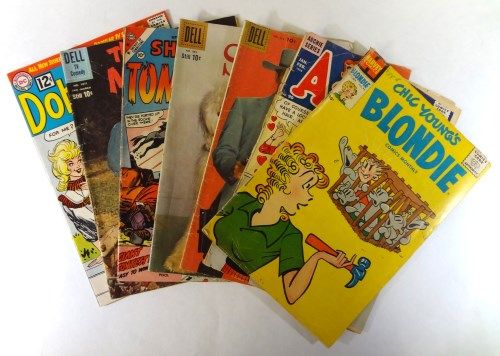 Receive 1956 Harvey Comics BLONDIE #95, 1958 ARCHIE #90 (cover detached), 1958 Dell COLT .45 #924, 1959 Dell SHAGGY DOG #985, 1959 Sheriff of TOMBSTONE #5, 1960 Dell The REAL McCOYS #1071, 1963 DC DOBIE GILLIS #17, All Average VG read condition Est $80-$90