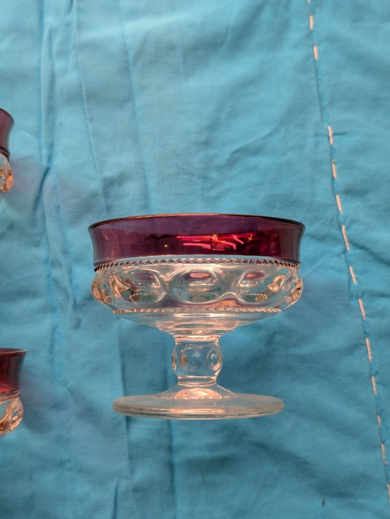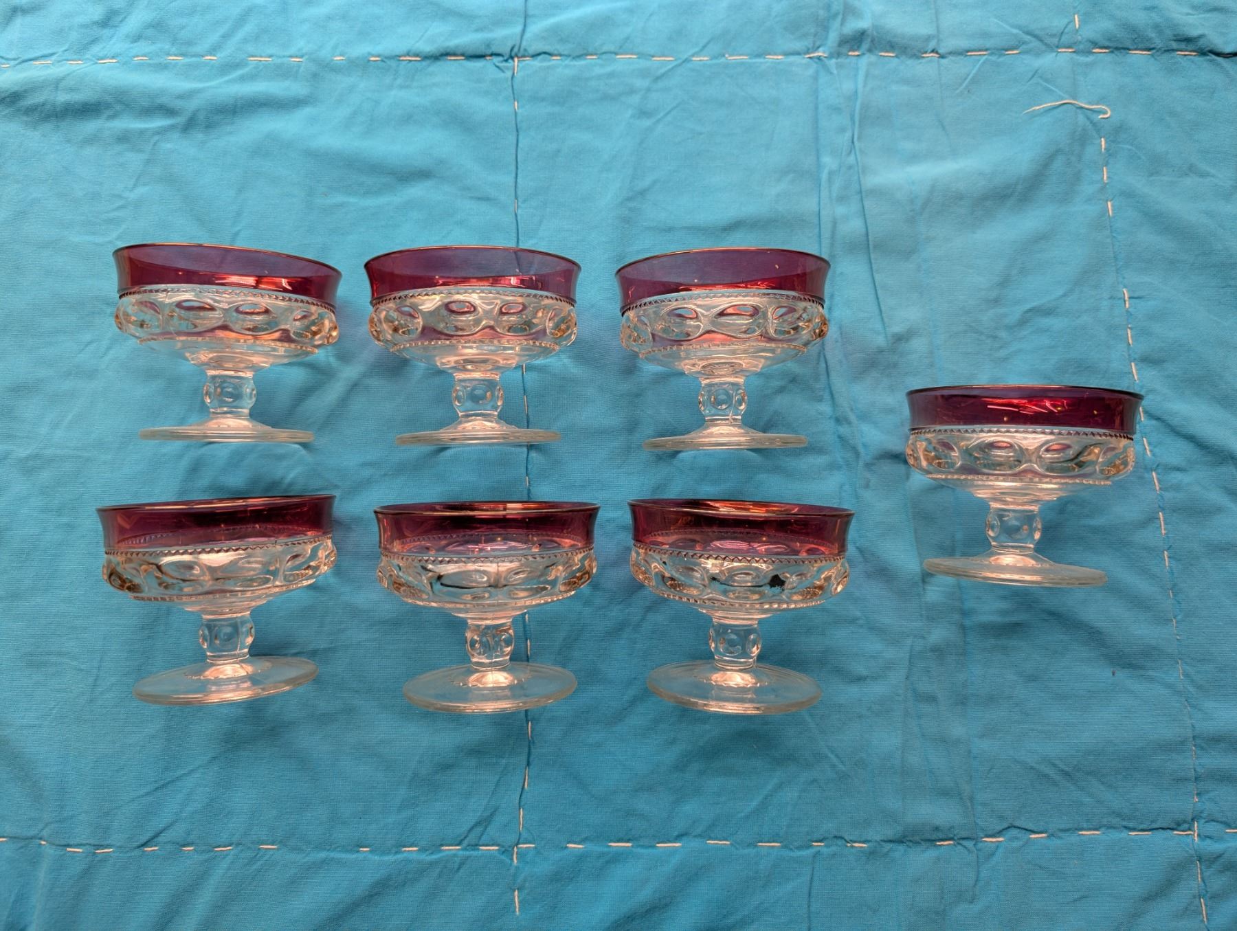 (7) Vintage Ruby Glass King Thumbprint Dessert Dishes