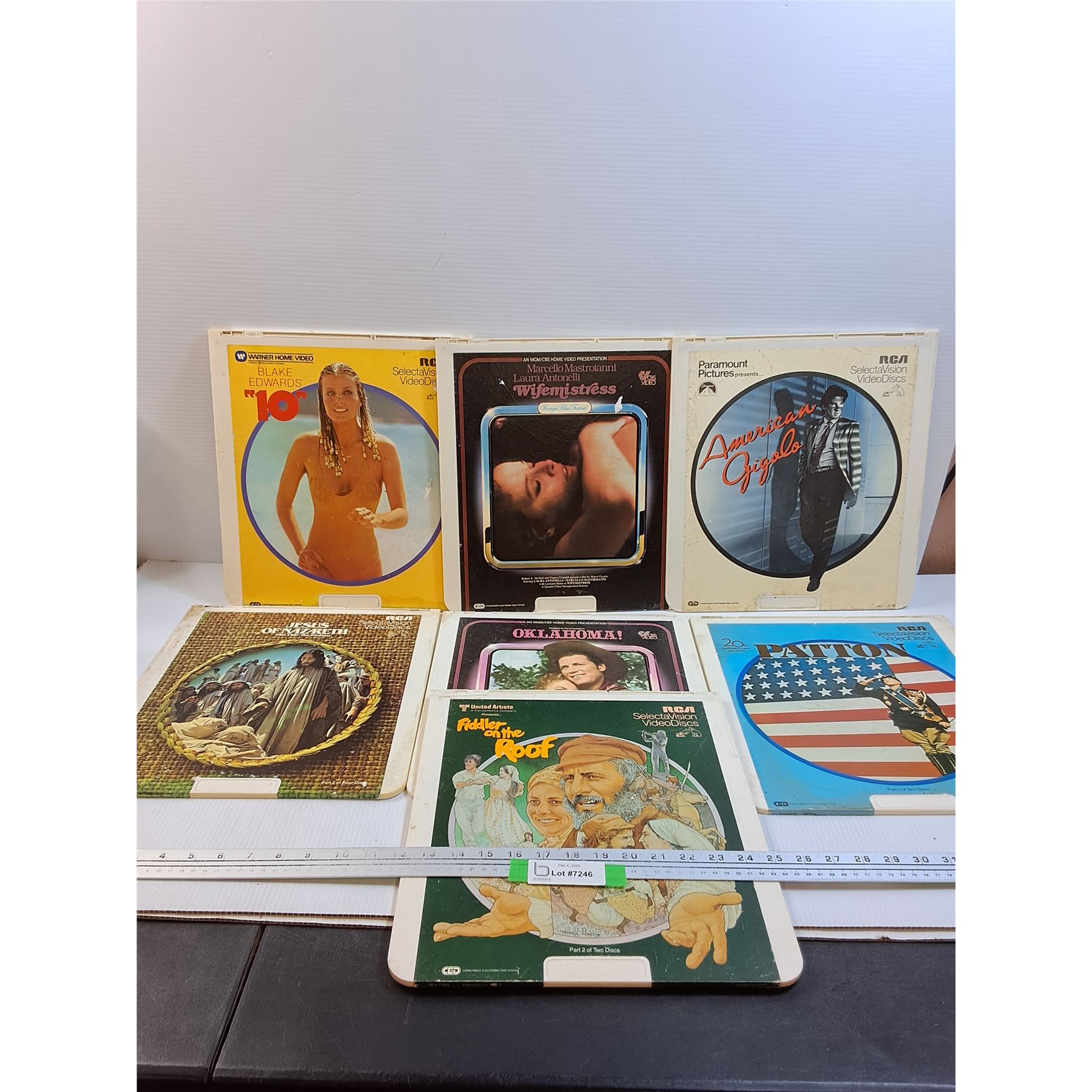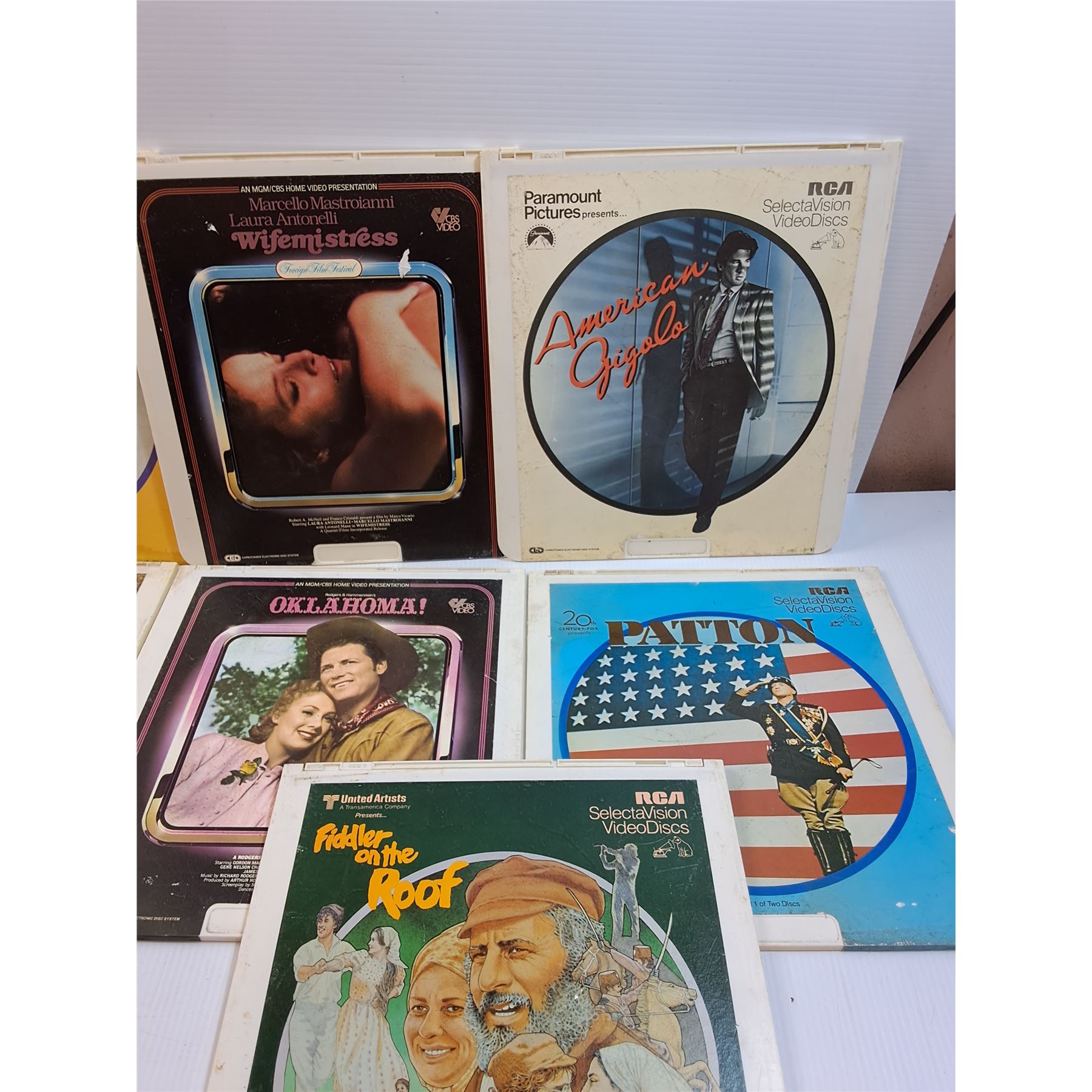 (7) Vintage Video Discs: Jesus, Fiddler on the Roof, Patton, American Gigalo, Misc
