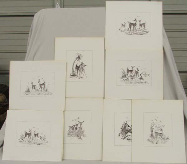 7 Woody Crumbo Prints From Denver Studio. Visuals measure approx. 7 1/2'' x 6 1/3''. Buyers Pay Actual Shipping and Handling Charges(see terms and conditions for more information).