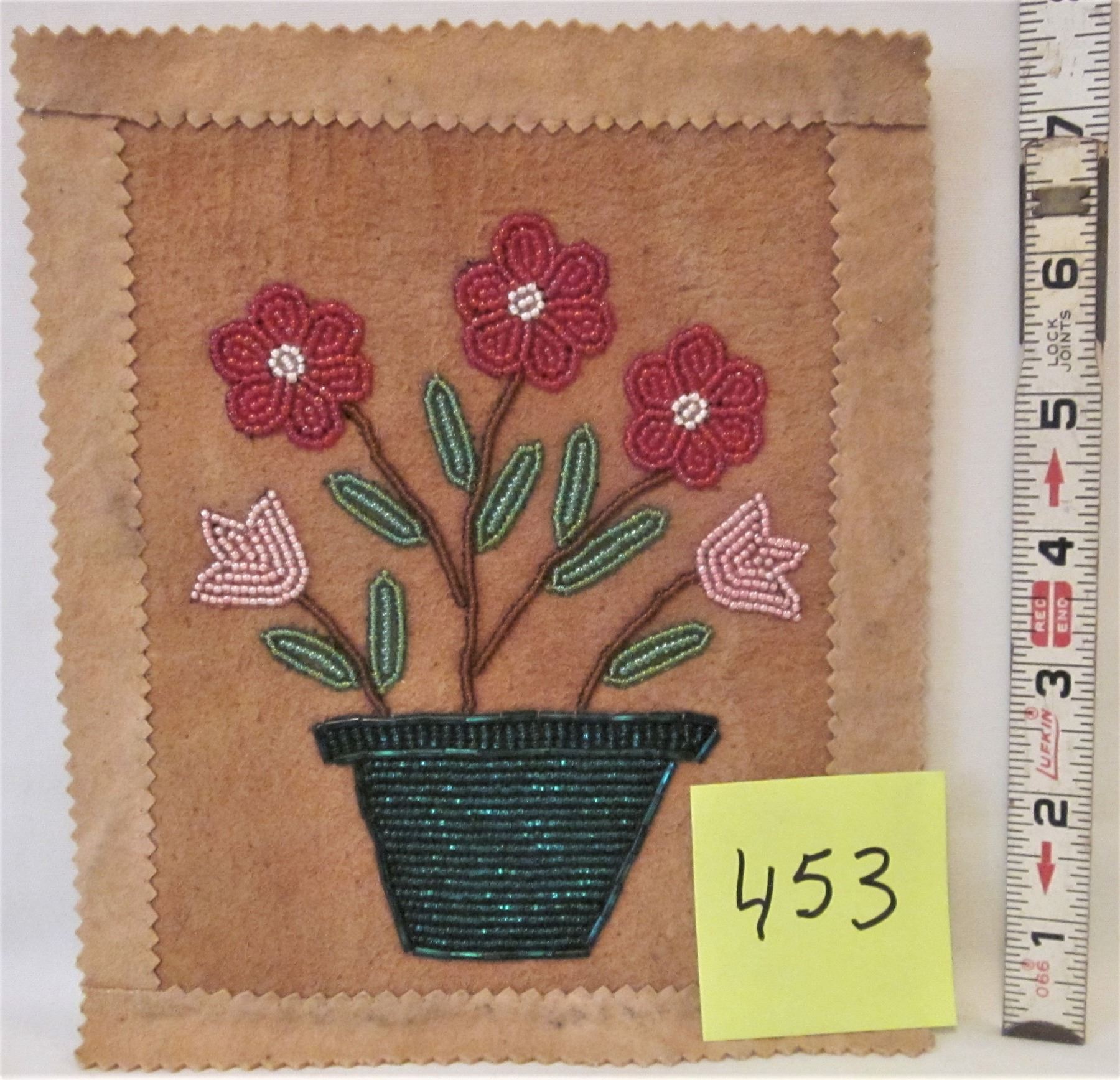 7" X 5" BEADED POTTED FLOWER ON MOOSEHIDE