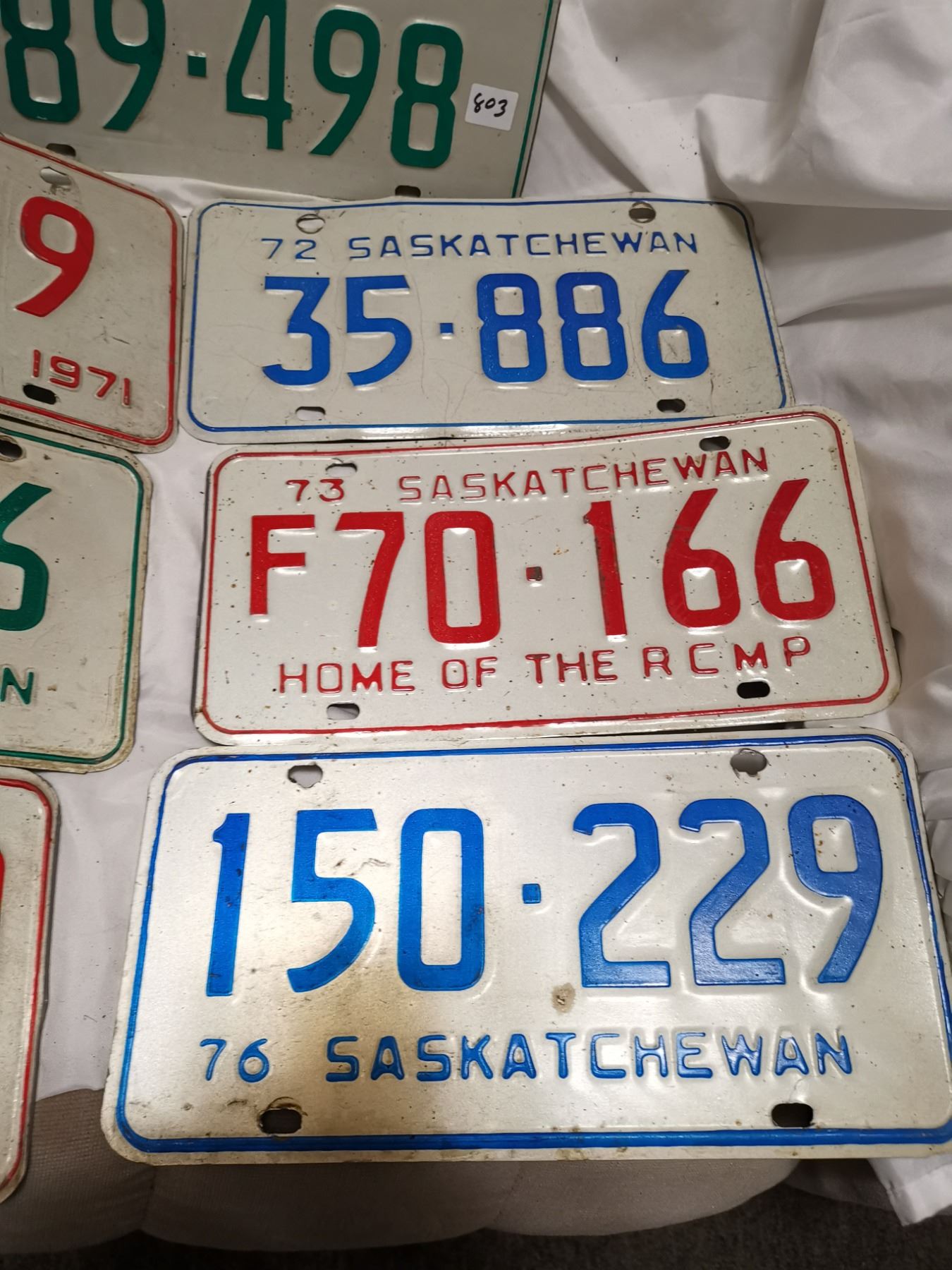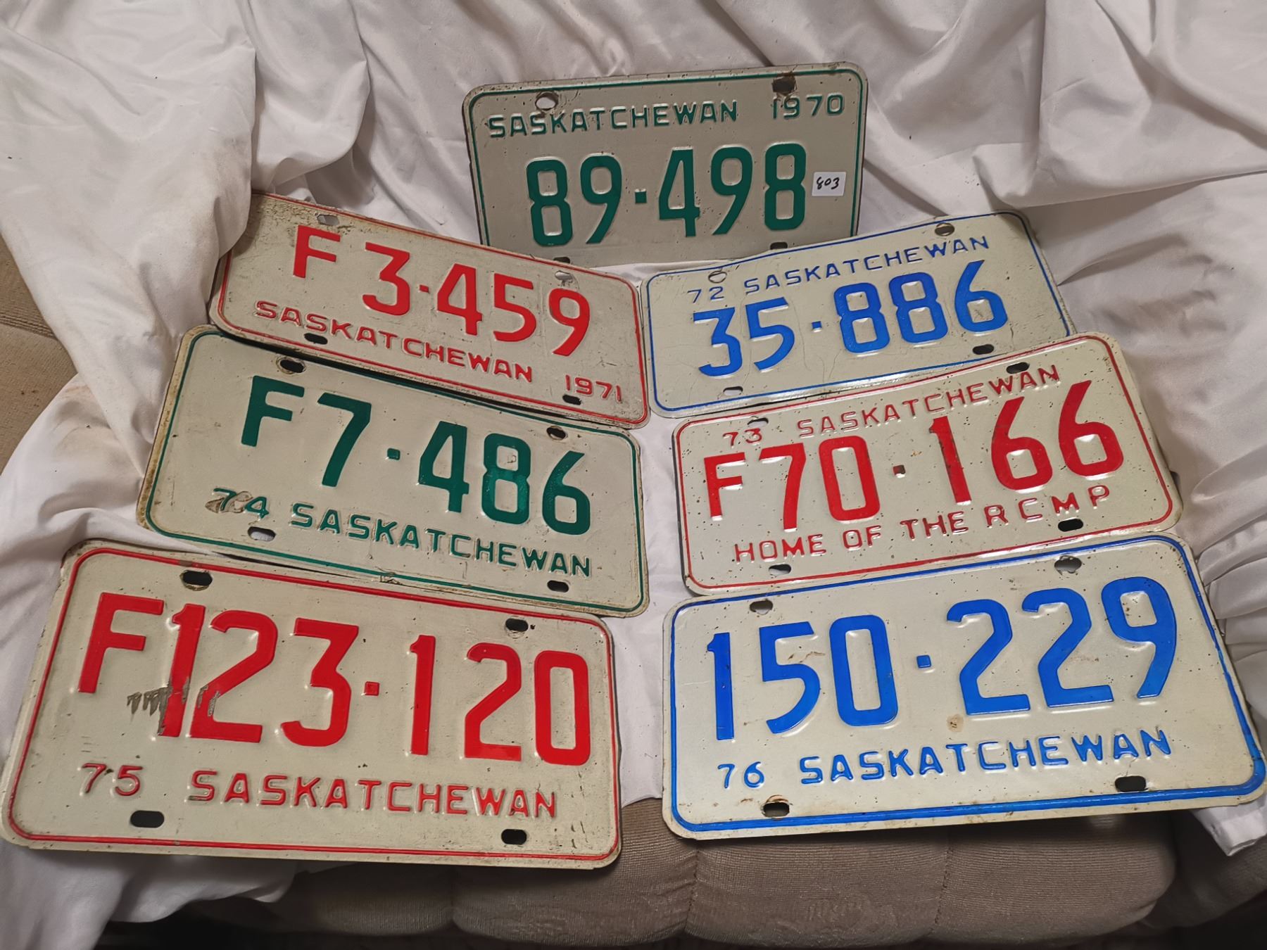 7 assorted Saskatchewan license plates - 1970-76