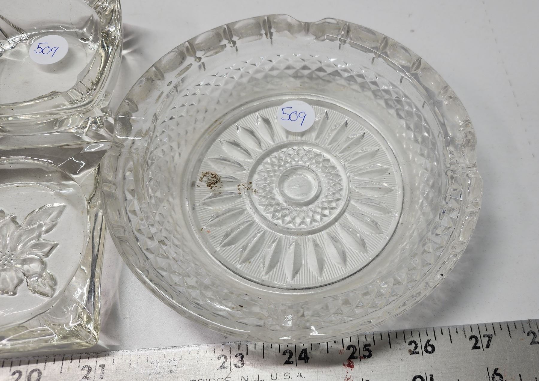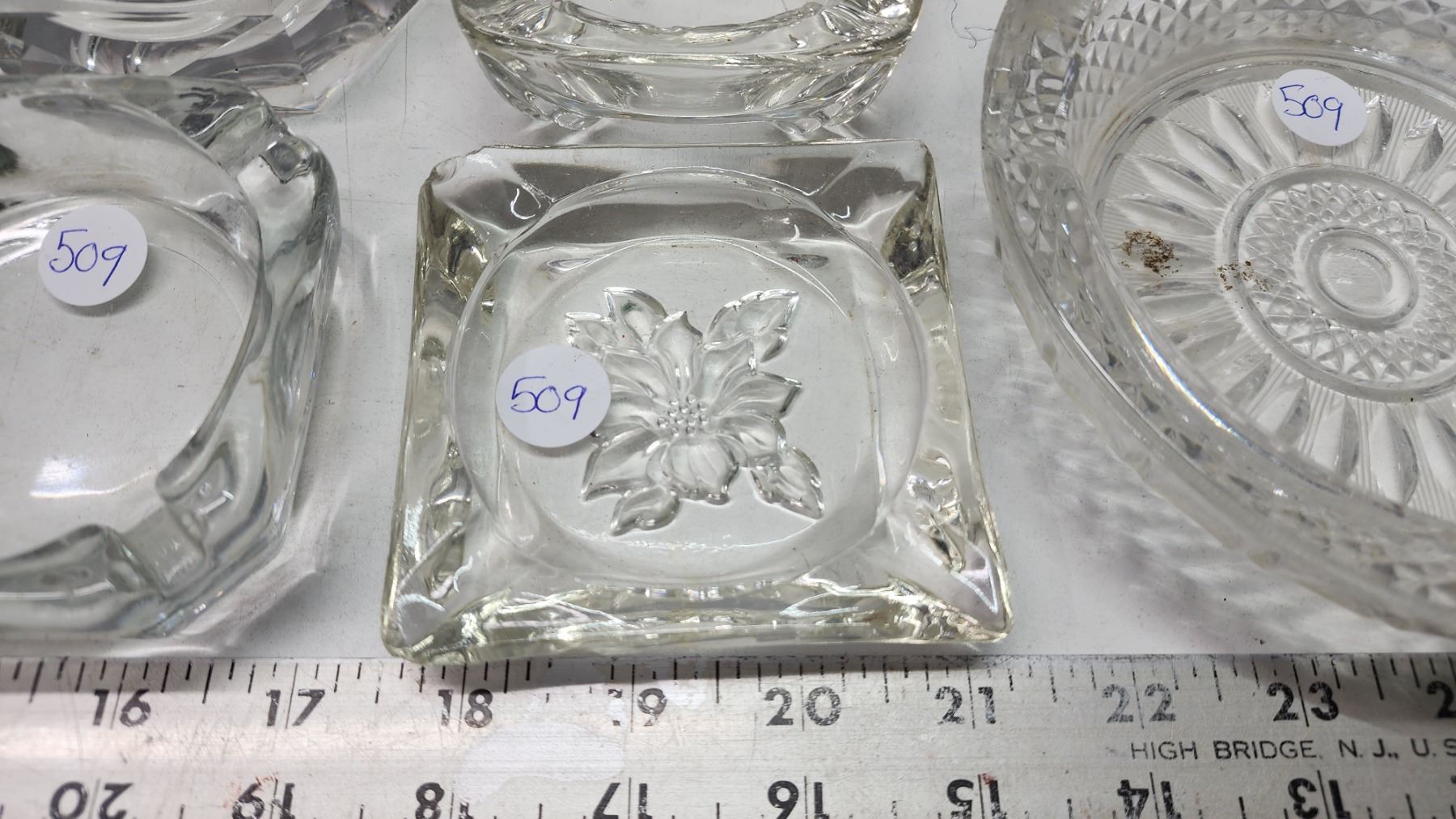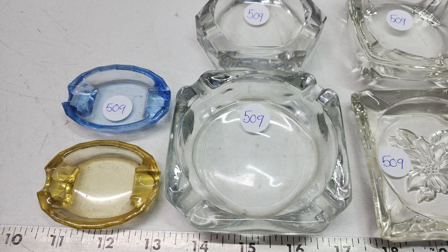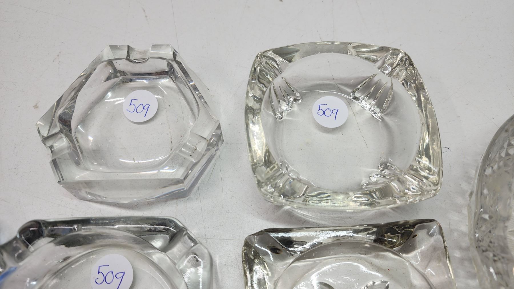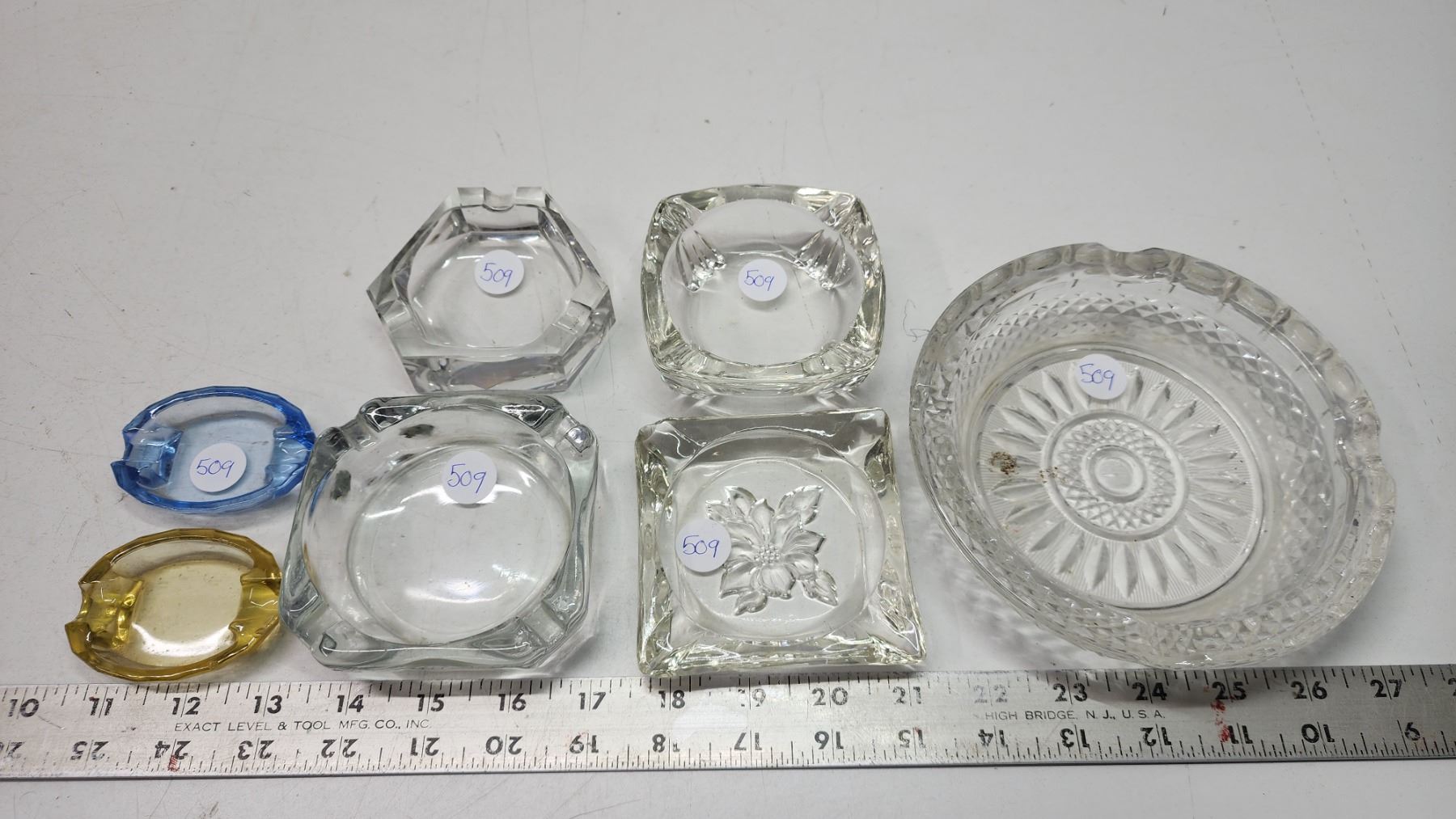 7 assorted sized glass ashtrays