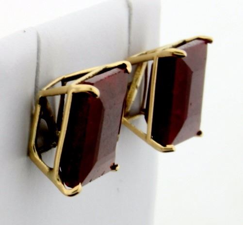 In 14K yellow gold, they contains 9mm square rubies with beautiful colors. They have 14K friction backs.           2.2g