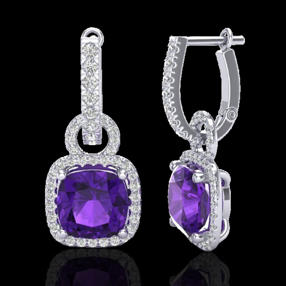 REF-118Y2X - SKU: 22955 ---- 7 ctw Amethyst & Micro Pave VS/SI Diamond Earrings 18k White Gold