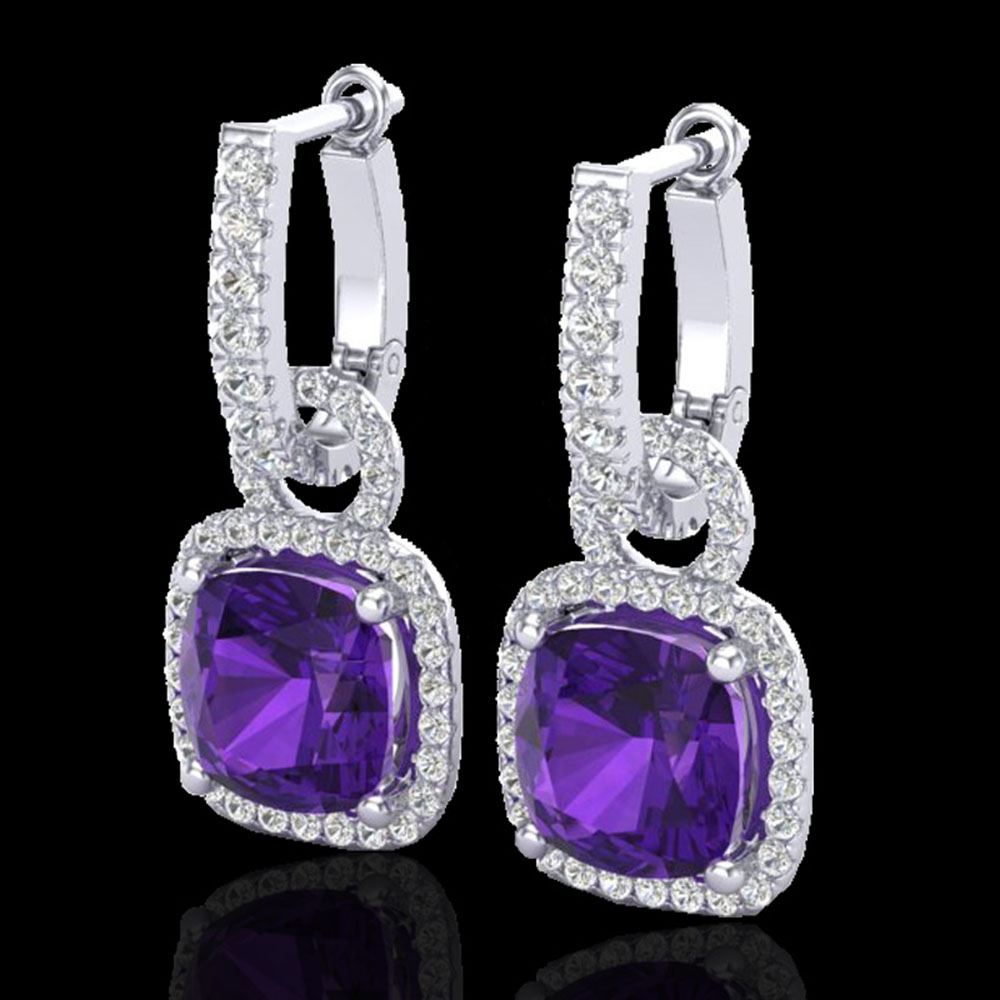 REF-118Y2X - SKU: 22955 ---- 7 ctw Amethyst & Micro Pave VS/SI Diamond Earrings 18k White Gold