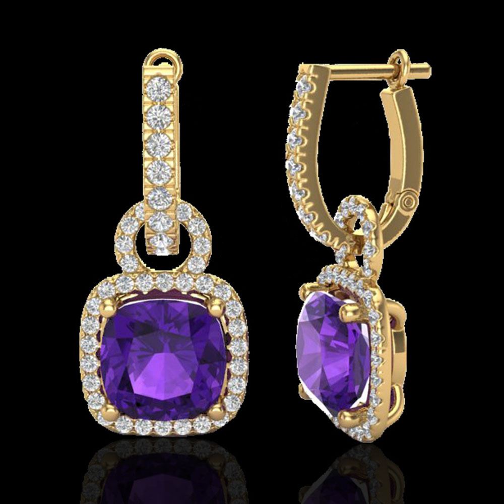 REF-118A2N - SKU: 22957 ---- 7 ctw Amethyst & Micro Pave VS/SI Diamond Earrings 18k Yellow Gold