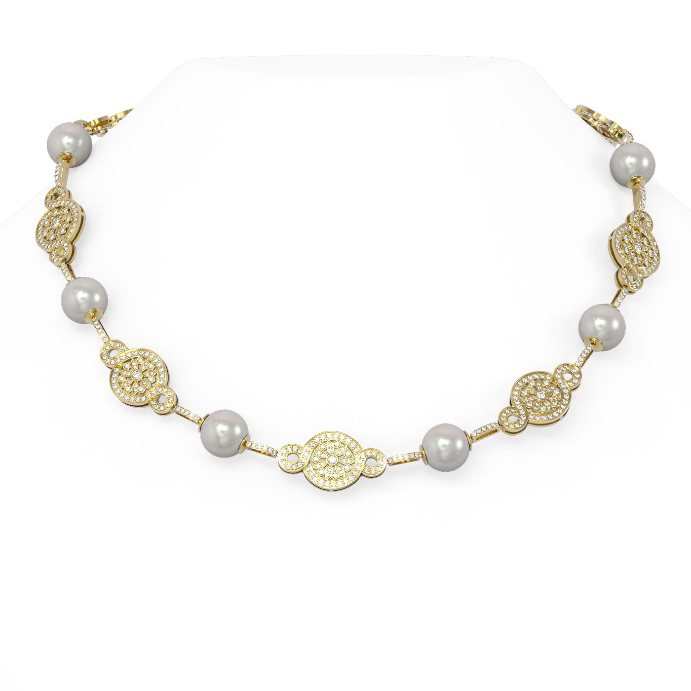 SKU: 55471 ---- 7 ctw Diamond & Pearl Necklace 18K Yellow Gold
