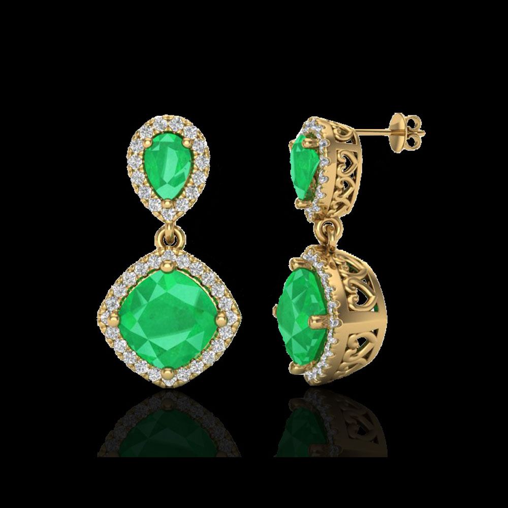 7 ctw Emerald & Micro Pave VS/SI Diamond Earrings Designer 10K Yellow Gold