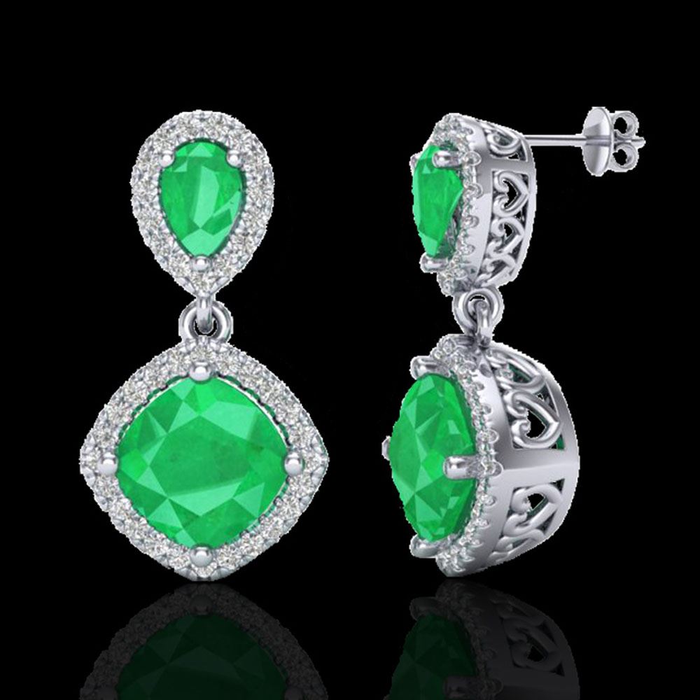 REF-118H2R - SKU: 20205 ---- 7 ctw Emerald & Micro Pave VS/SI Diamond Earrings Designer 10k White Gold