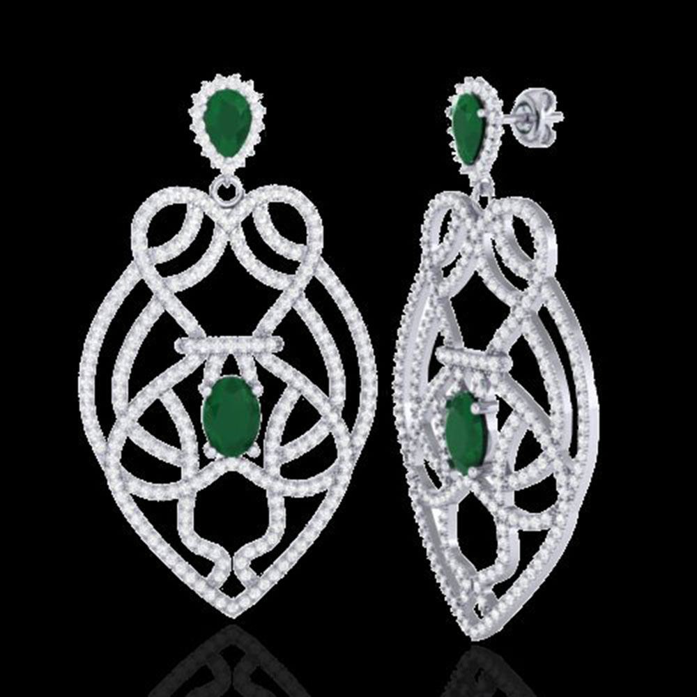 REF-381Y8X - SKU: 21136 ---- 7 ctw Emerald & Micro VS/SI Diamond Heart Earrings 14k White Gold