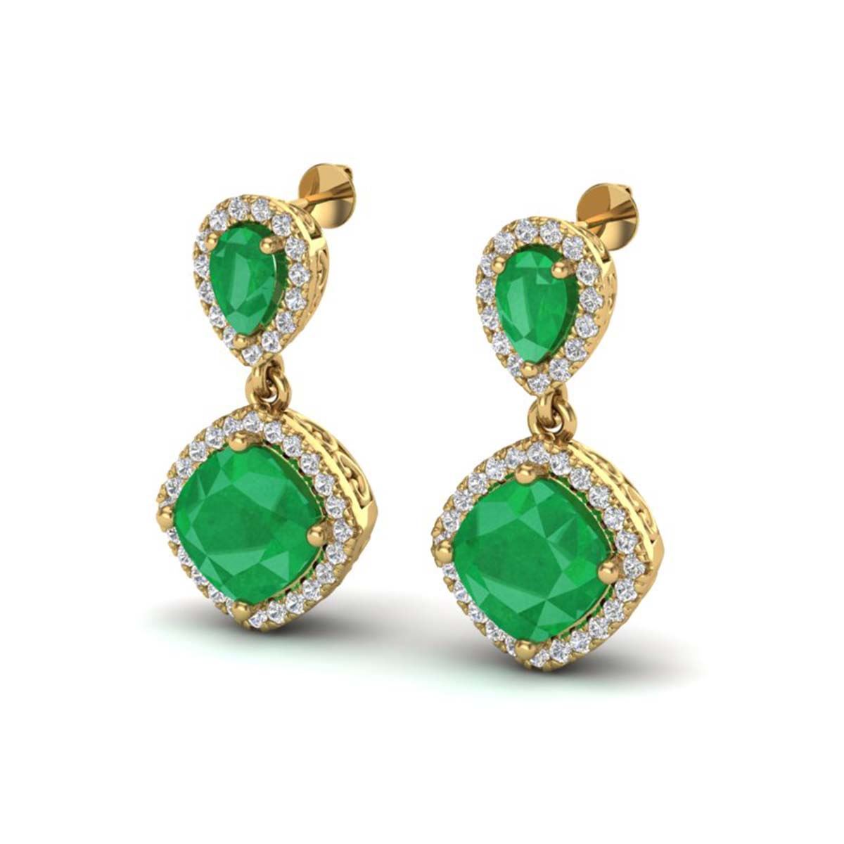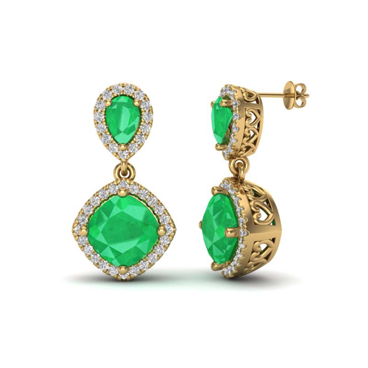 REF-118Y2X - SKU:20206 ---- 7 ctw Emerald & VS/SI Diamond Earrings Designer 10K Yellow Gold
