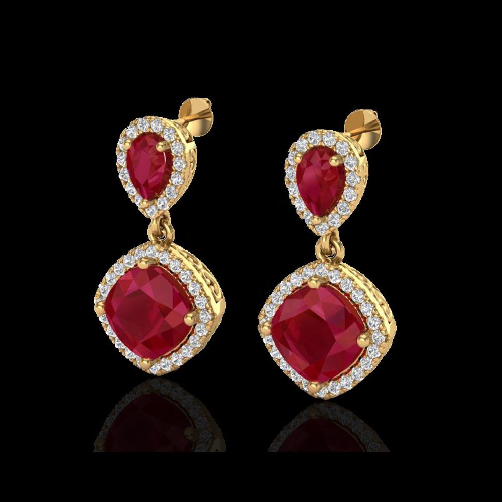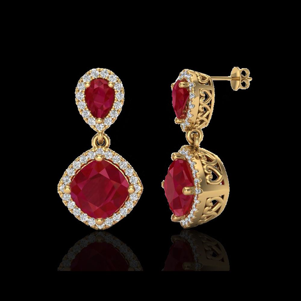 7 ctw Ruby & Micro Pave VS/SI Diamond Earrings Designer 10K Yellow Gold