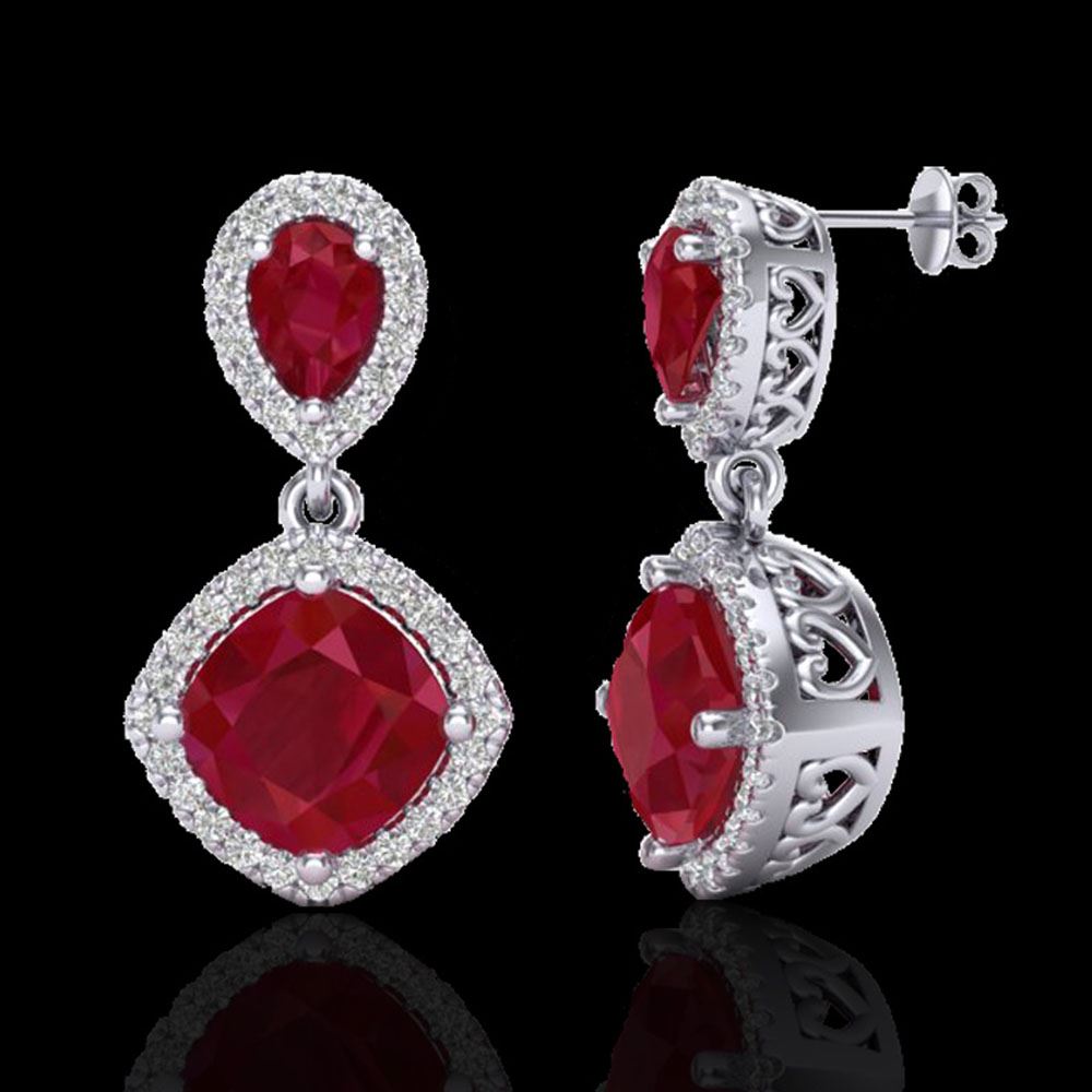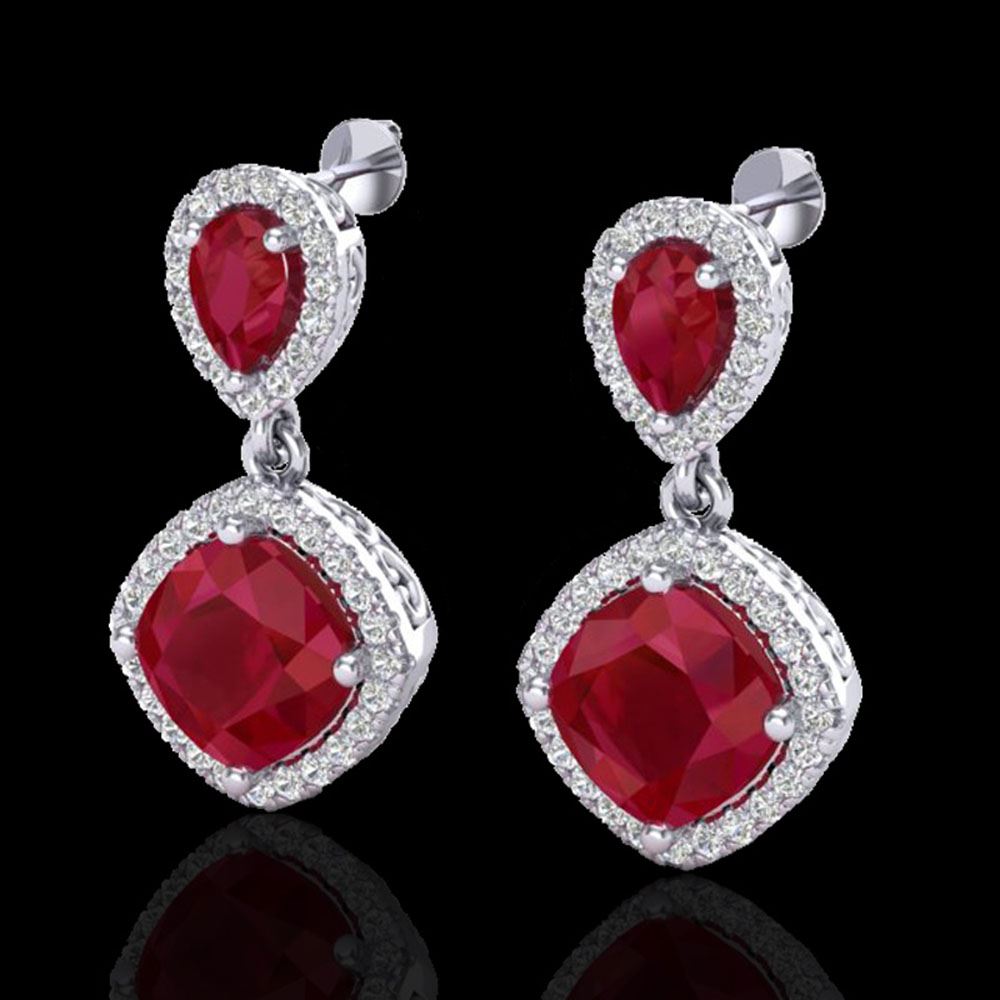 REF-118M2G - SKU: 20207 ---- 7 ctw Ruby & Micro Pave VS/SI Diamond Earrings Designer 10k White Gold