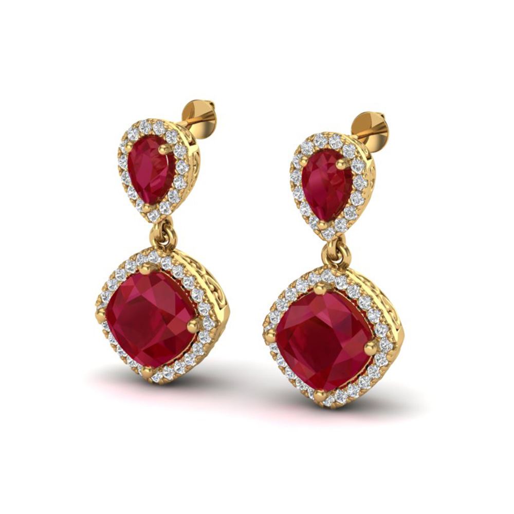 SKU: 20208 ---- 7 ctw Ruby & Micro Pave VS/SI Diamond Earrings Designer 10k Yellow Gold