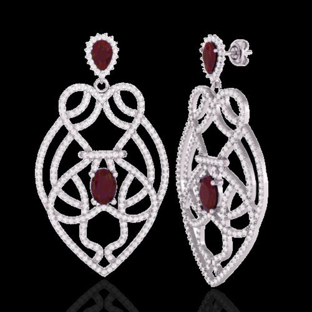 REF-381H8R - SKU: 21138 ---- 7 ctw Ruby & Micro VS/SI Diamond Heart Earrings Designer 14k White Gold