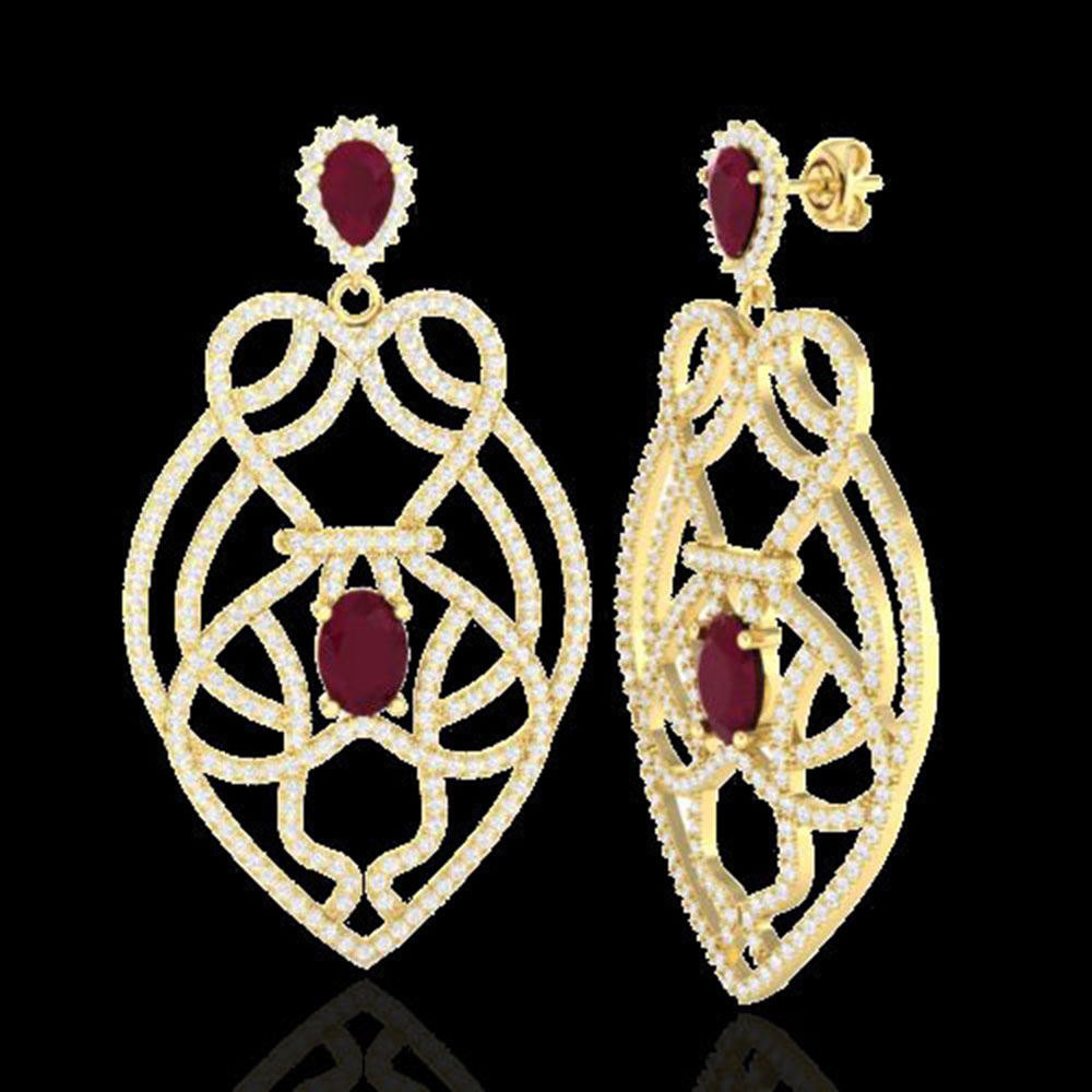 REF-381K8Y - SKU: 21139 ---- 7 ctw Ruby & Micro VS/SI Diamond Heart Earrings Designer 14k Yellow Gold