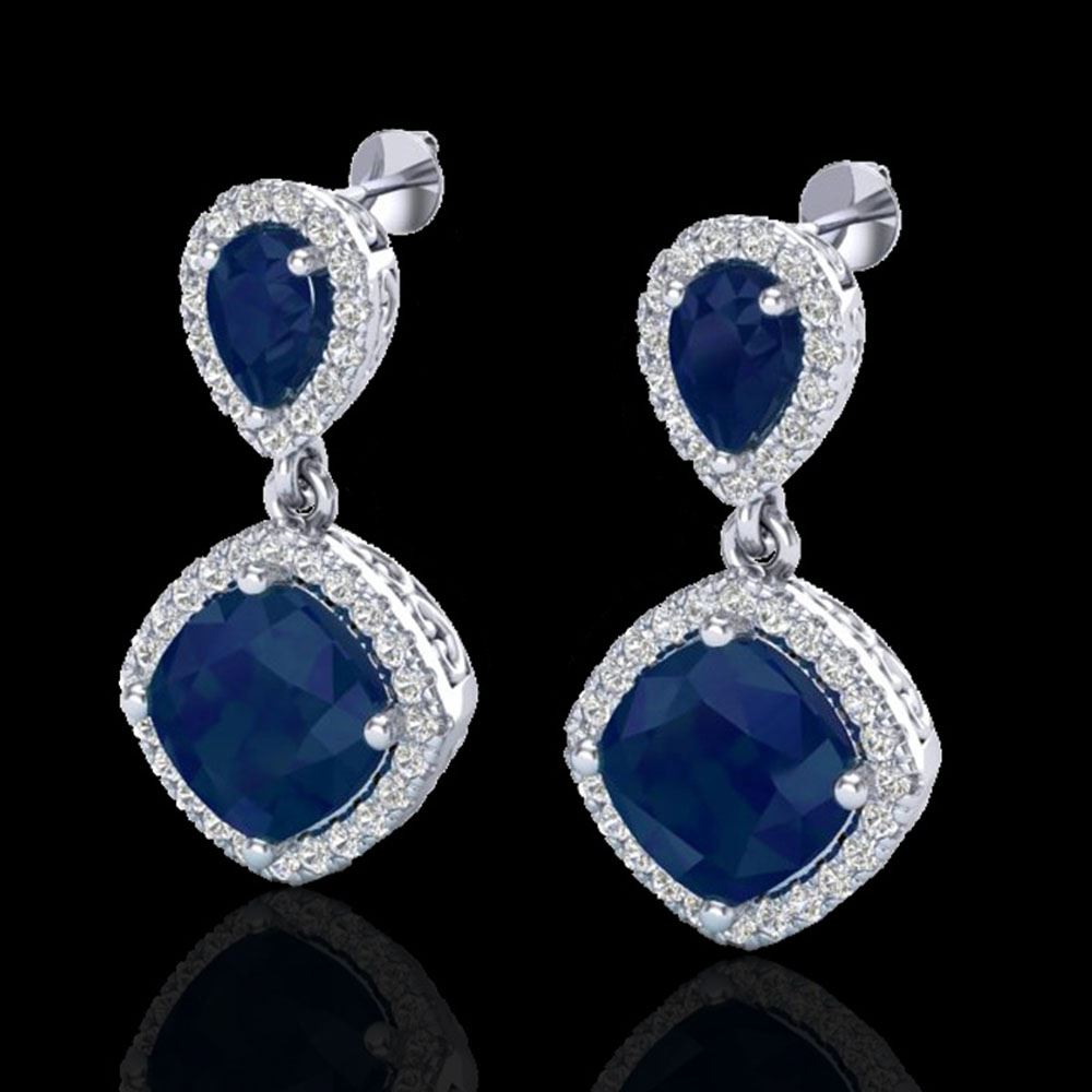 REF-118A2N - SKU: 20209 ---- 7 ctw Sapphire & Micro Pave VS/SI Diamond Earrings Designer 10k White Gold