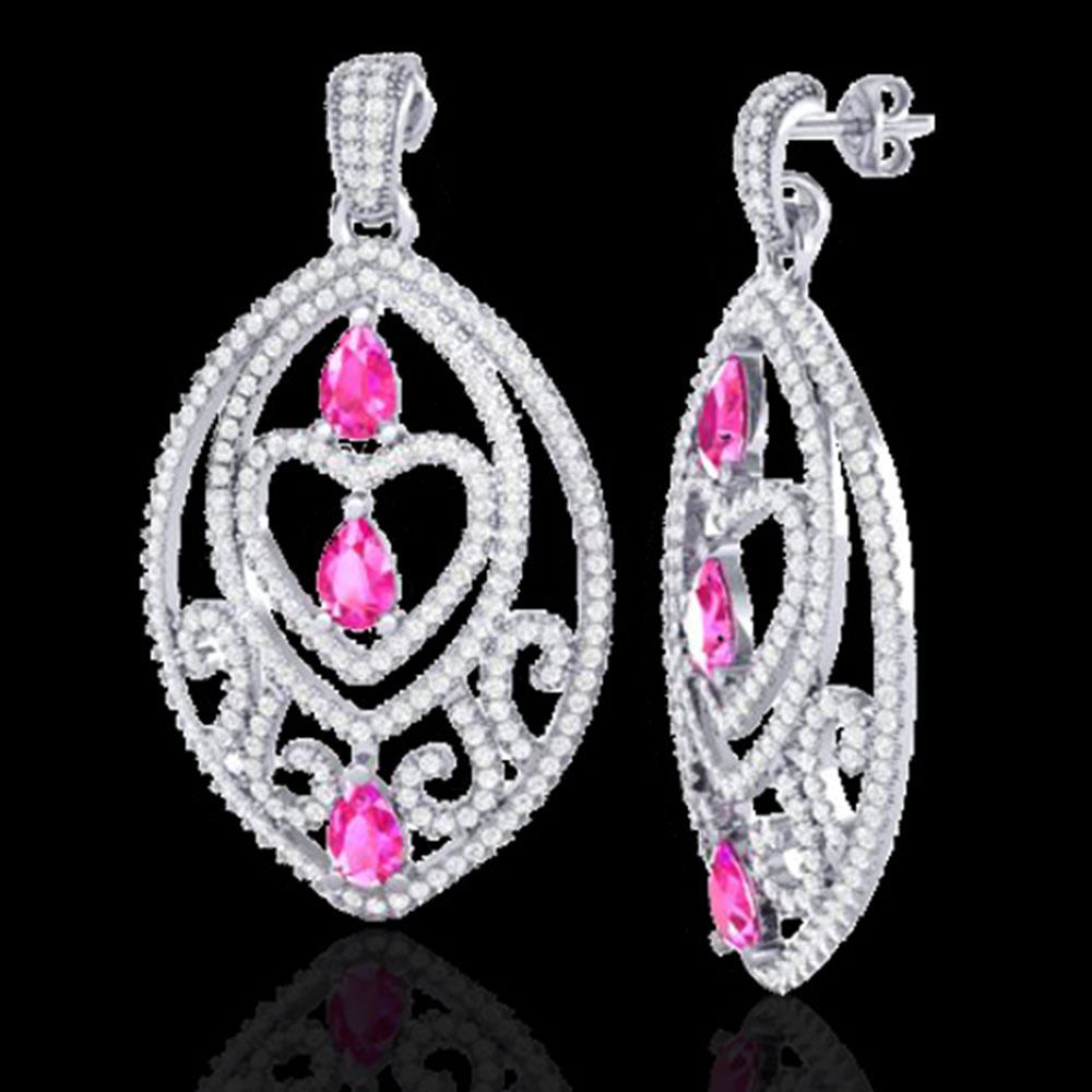 REF-418M2G - SKU: 21156 ---- 7 ctw Sapphire Pink & Micro Pave Diamond Heart Earrings 18k White Gold
