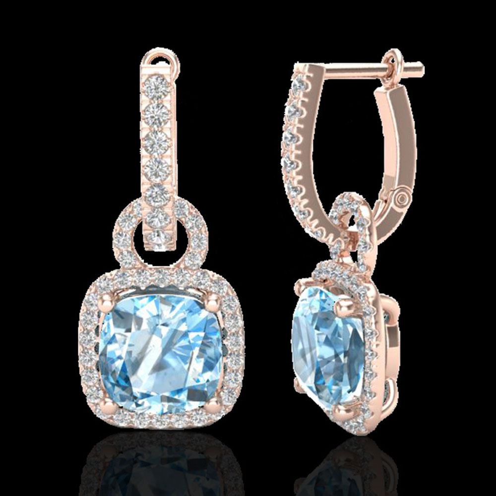 REF-98Y2X - SKU: 22973 ---- 7 ctw Sky Blue Topaz & Micro Pave VS/SI Diamond Earrings 14k Rose Gold
