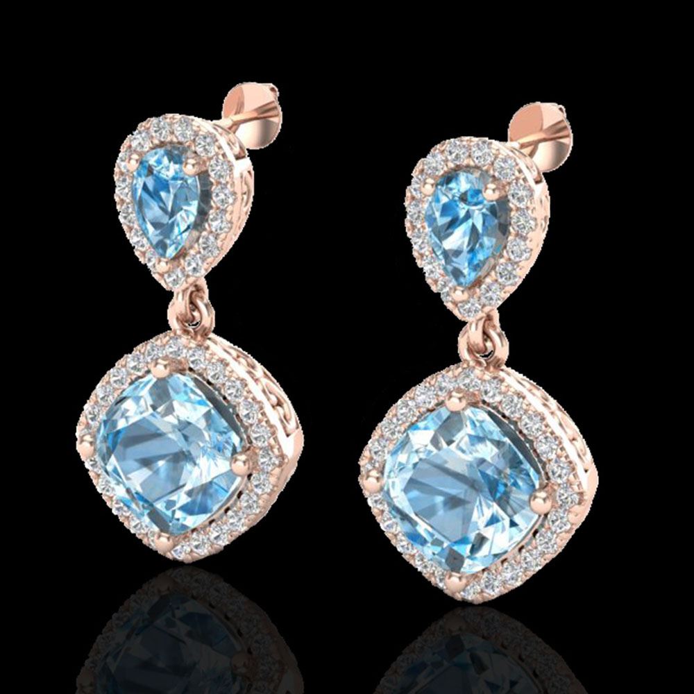 REF-79M3G - SKU: 20199 ---- 7 ctw Sky Blue Topaz & Micro VS/SI Diamond Earrings 10k Rose Gold