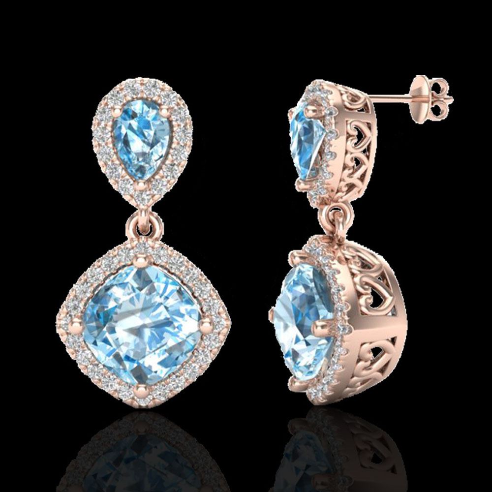 REF-79M3G - SKU: 20199 ---- 7 ctw Sky Blue Topaz & Micro VS/SI Diamond Earrings 10k Rose Gold