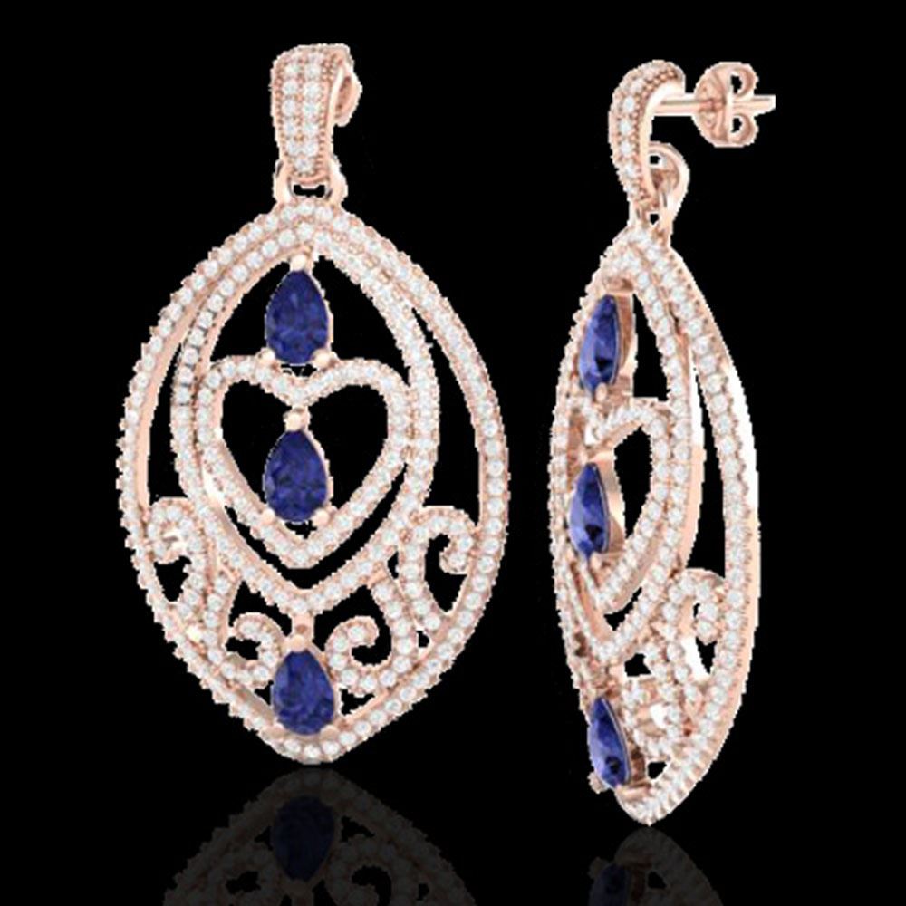 SKU: 21162 ---- 7 ctw Tanzanite & Micro Pave Diamond Heart Earrings 14k Rose Gold